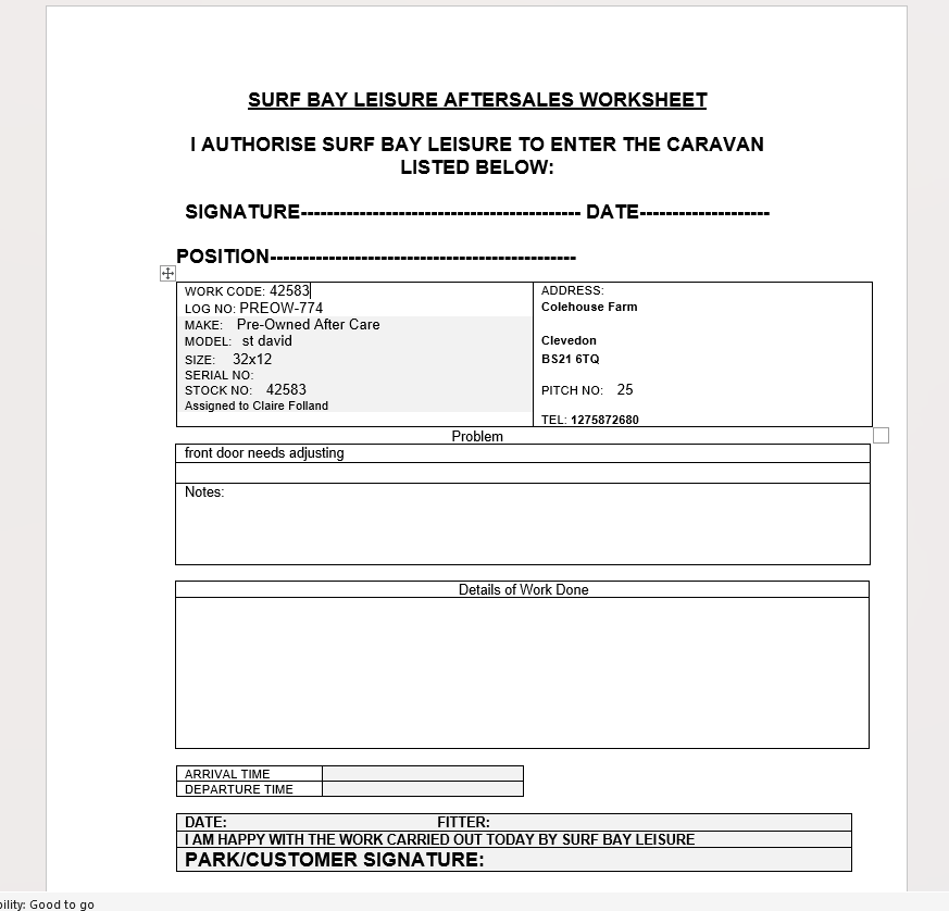 | Status | Parts Recieved [ 10003 ] | Worksheet Issued [ 10004 ] |
