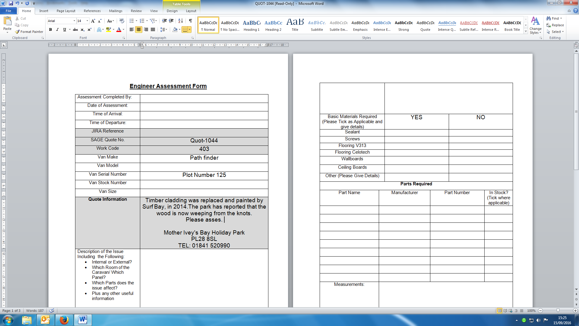 Isabel Smith (Inactive) added a comment - Engineer assesment has been returned and a copy of it has been attached. Awaiting a quote from Ade or Deb.