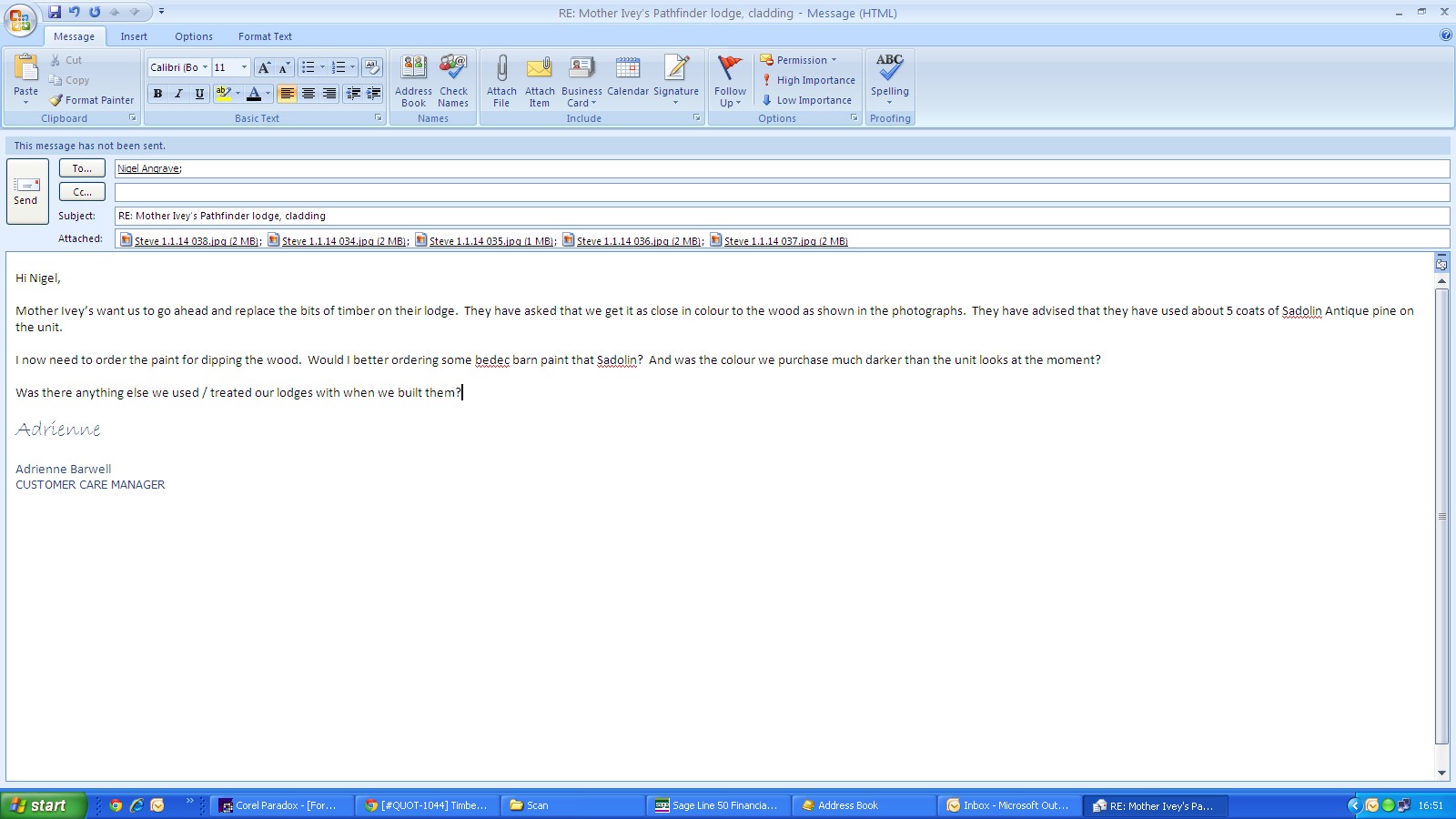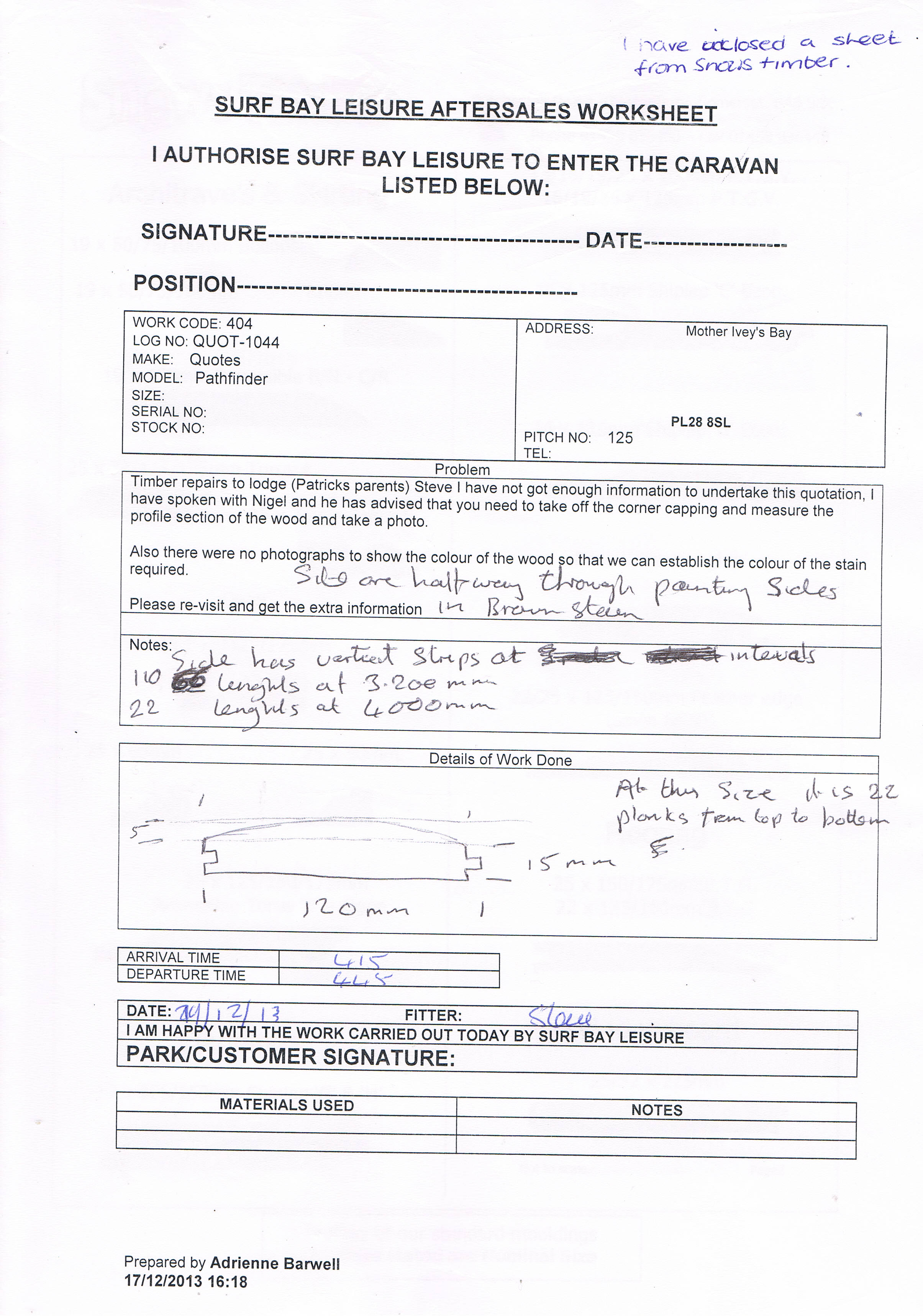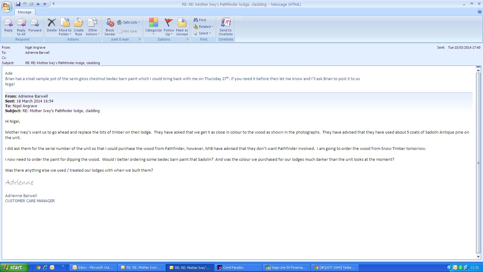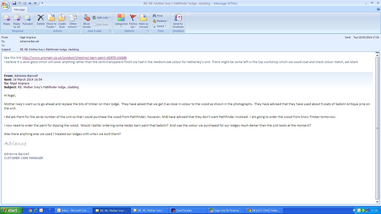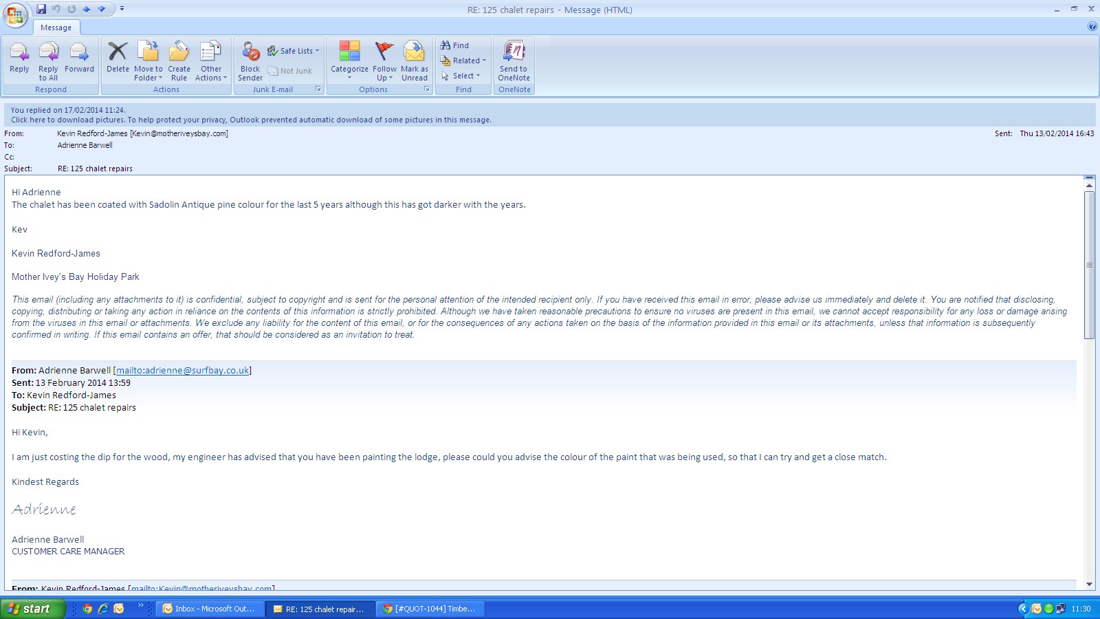 Debbie Bartlett (Inactive) added a comment - Julie has the below. Hi Debbie, The lodge at plot 125 is painted in Sadolin Teak. Kind Regards Julie