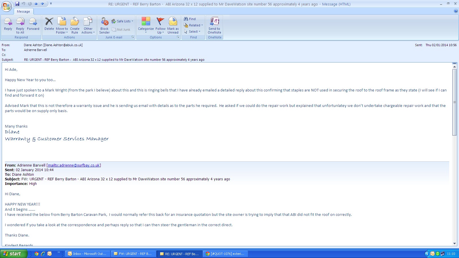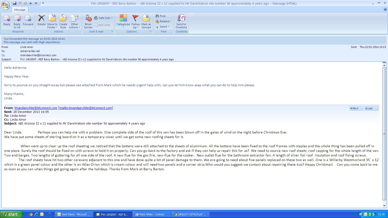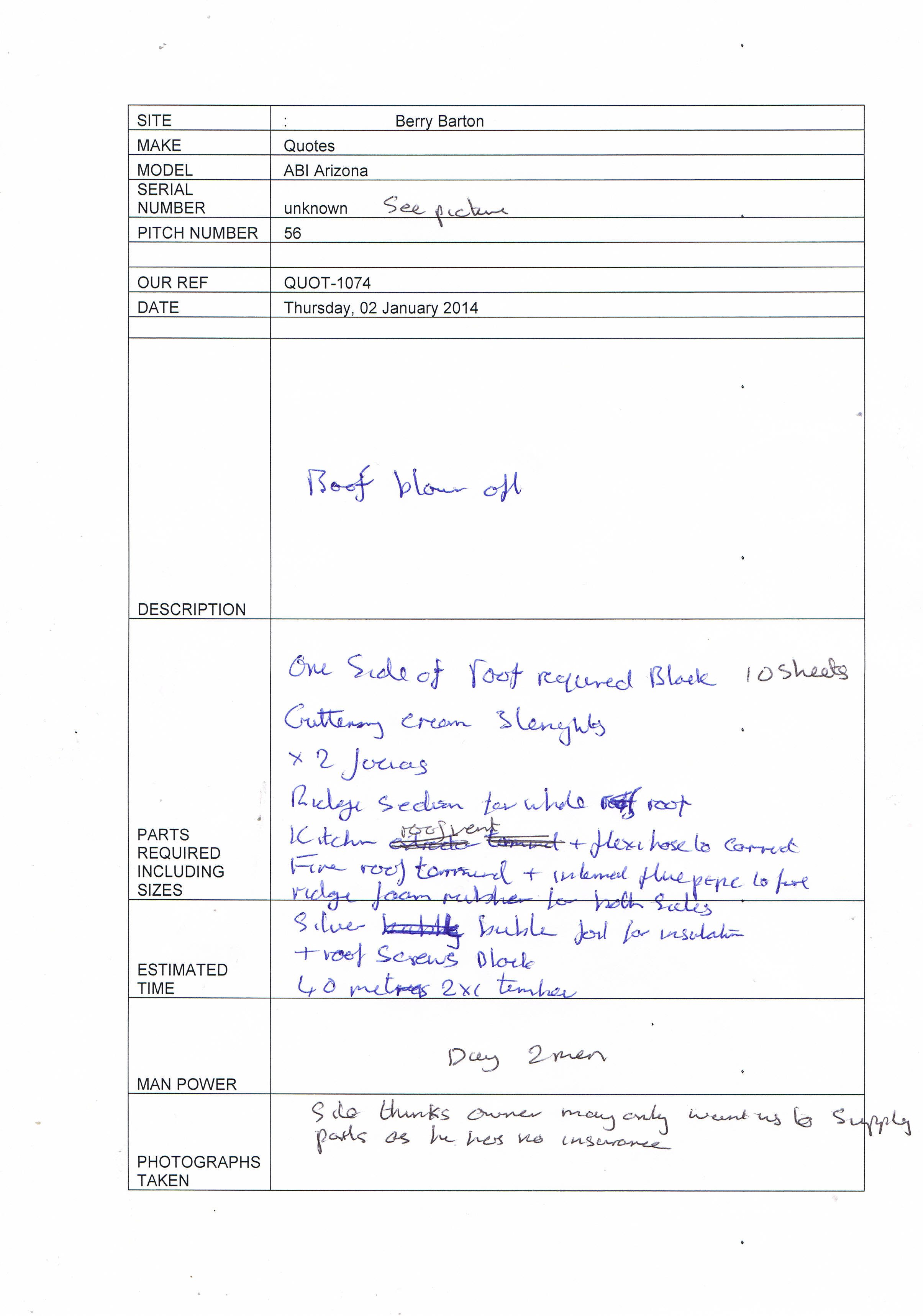 (Site feel that the roof was not fitted correctly by ABI)