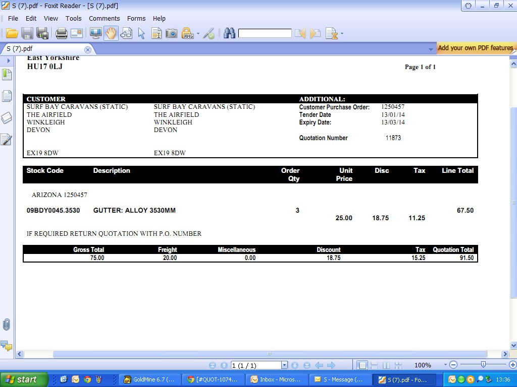 • SLA: Quote Time to: