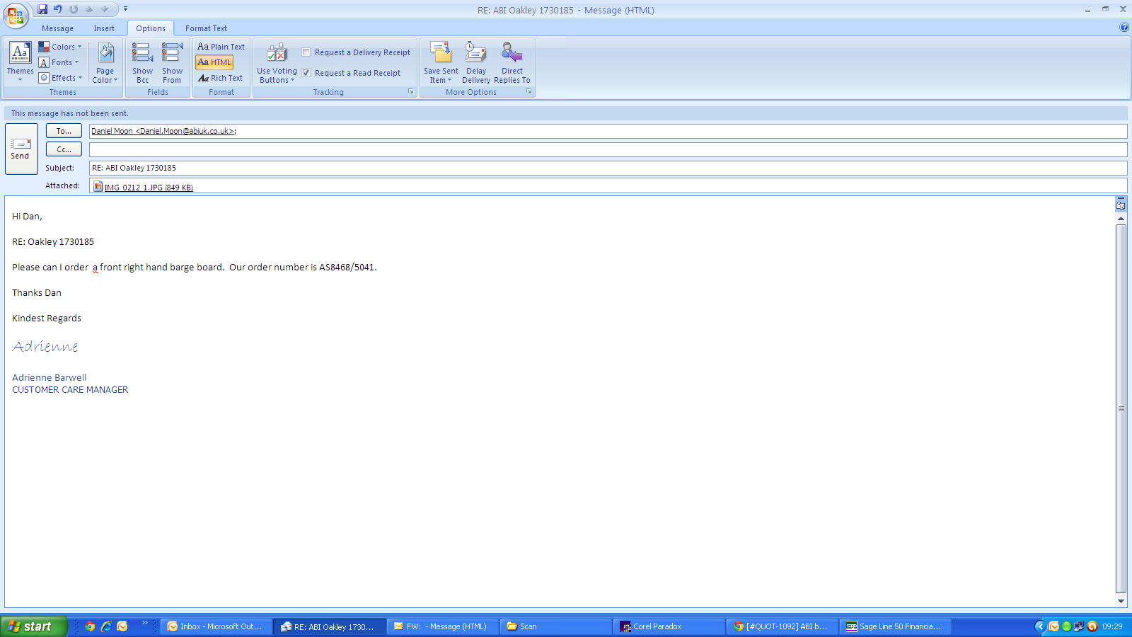 Adrienne Barwell (Inactive) added a comment - Michael would like us to go ahead and order a barge board and also send the quote/ invoice to Mayflower