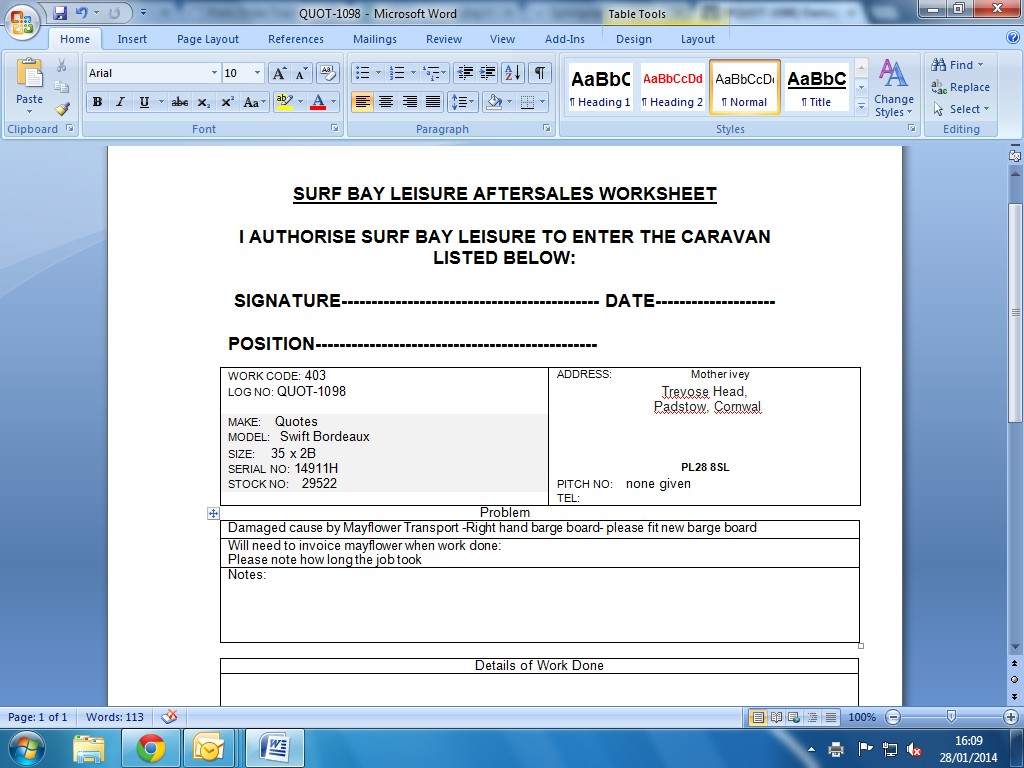 Satisfaction note signed:No