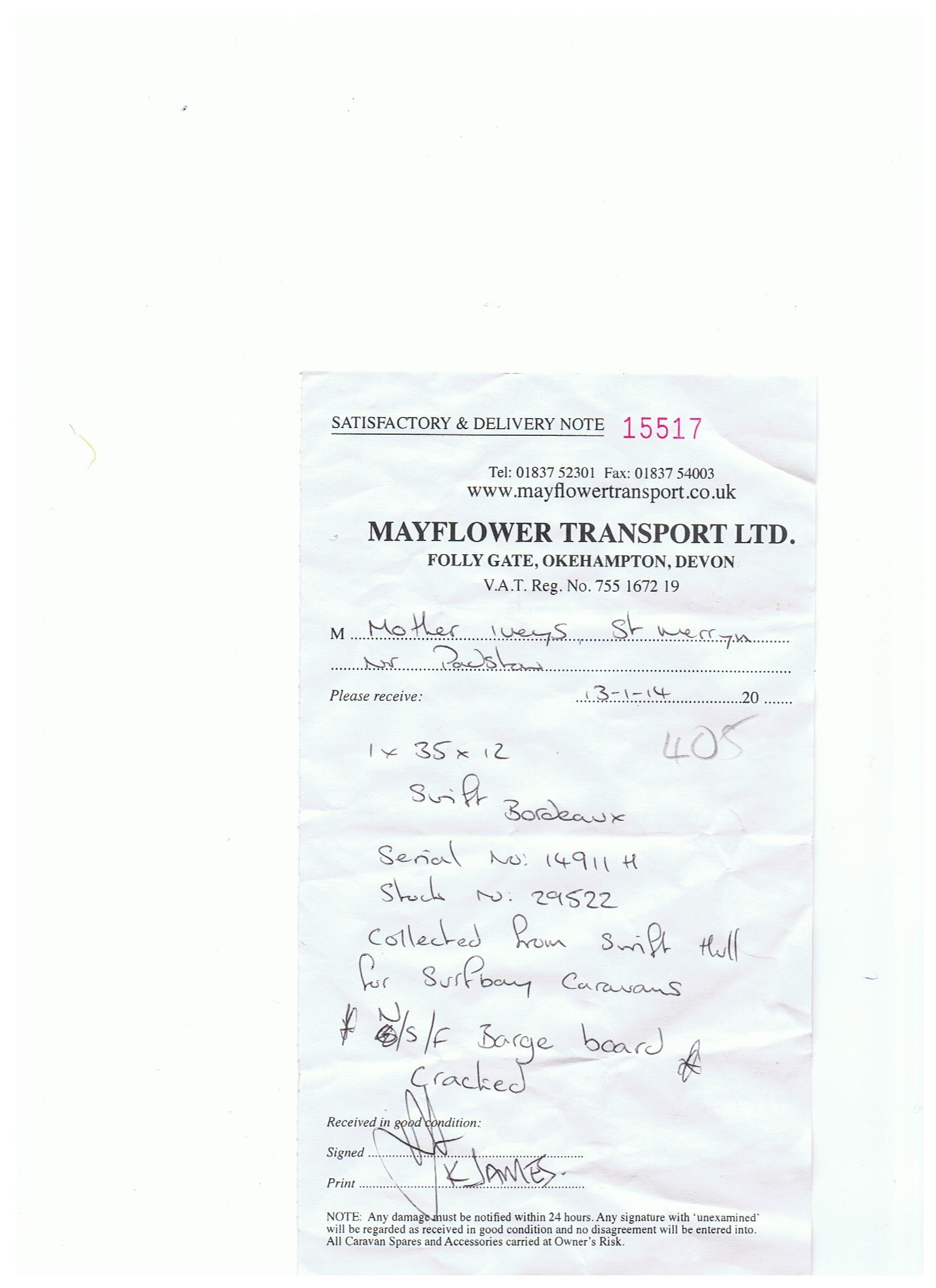 | Attachment | quote-1098 - mayflower -New Van 405 Damage record on delivery note.jpg [ 53730 ] |