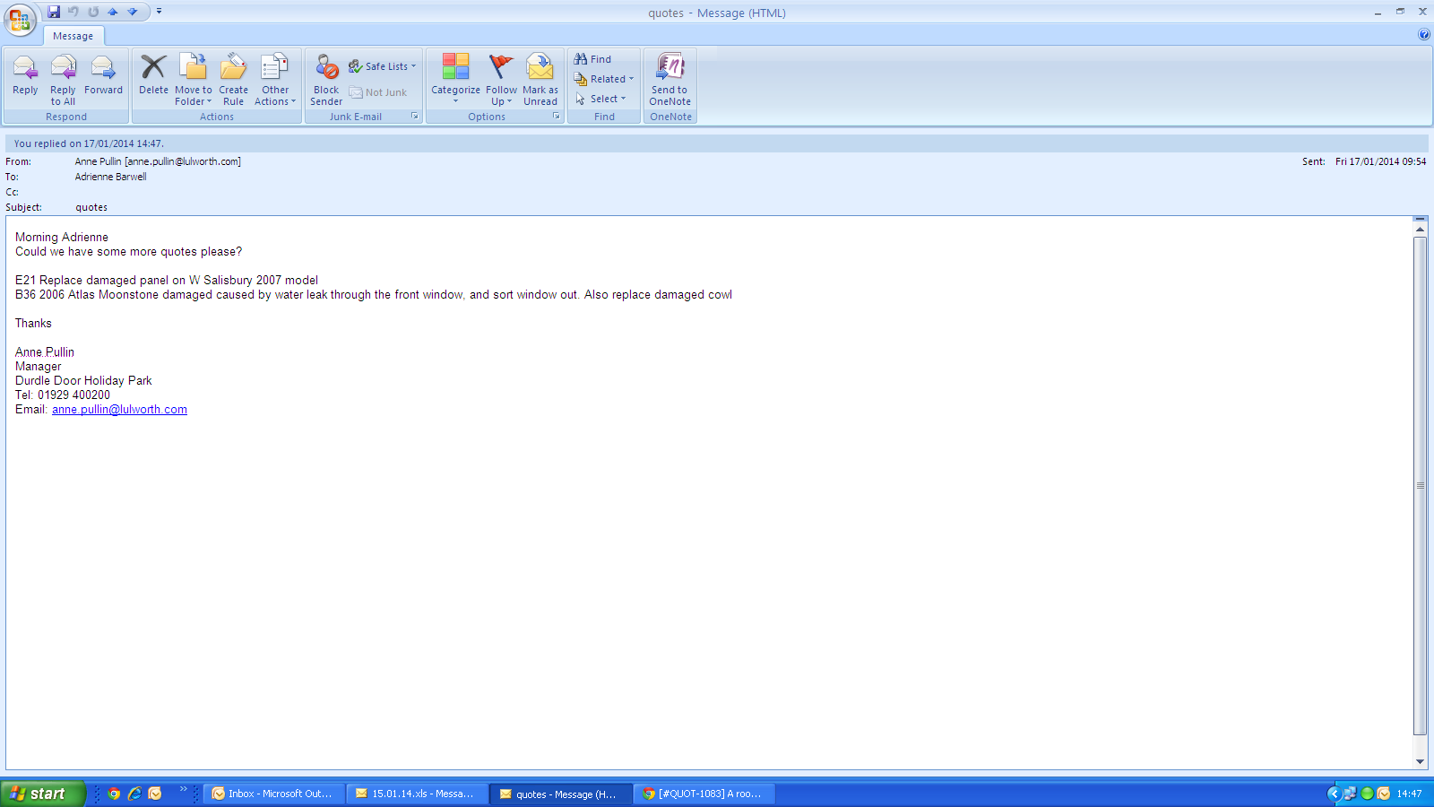 Adrienne Barwell (Inactive) added a comment - I have heard nothing back so assume that the quote has been rejected