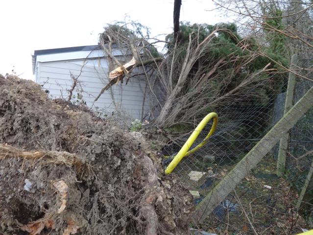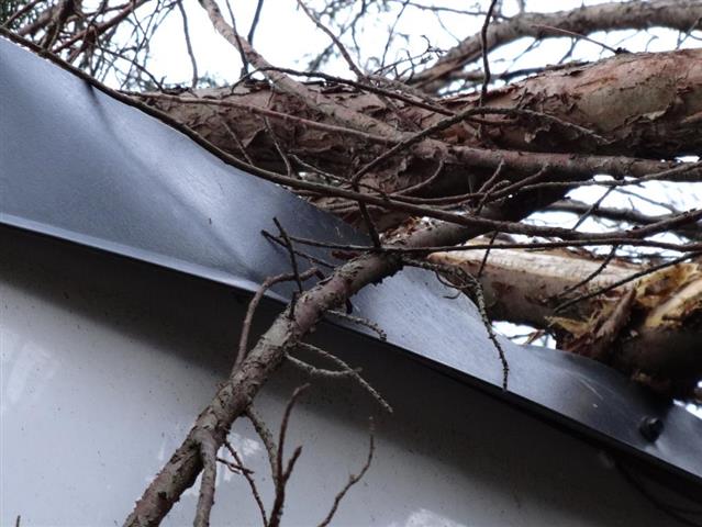 Tree has fallen on unit causing damage to roof and panels