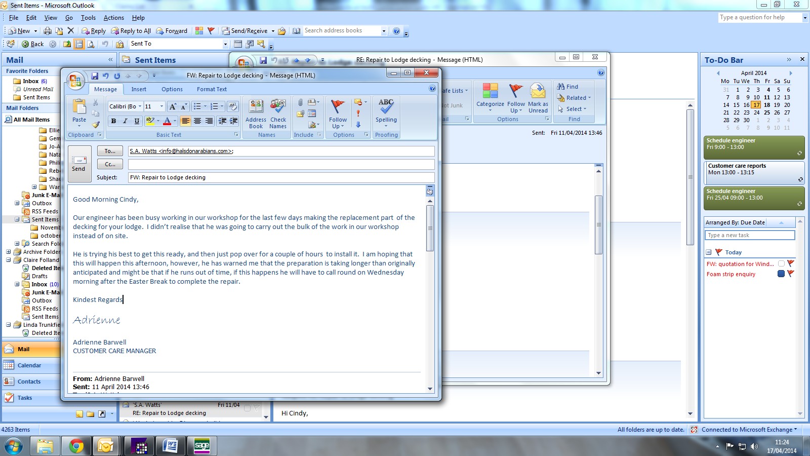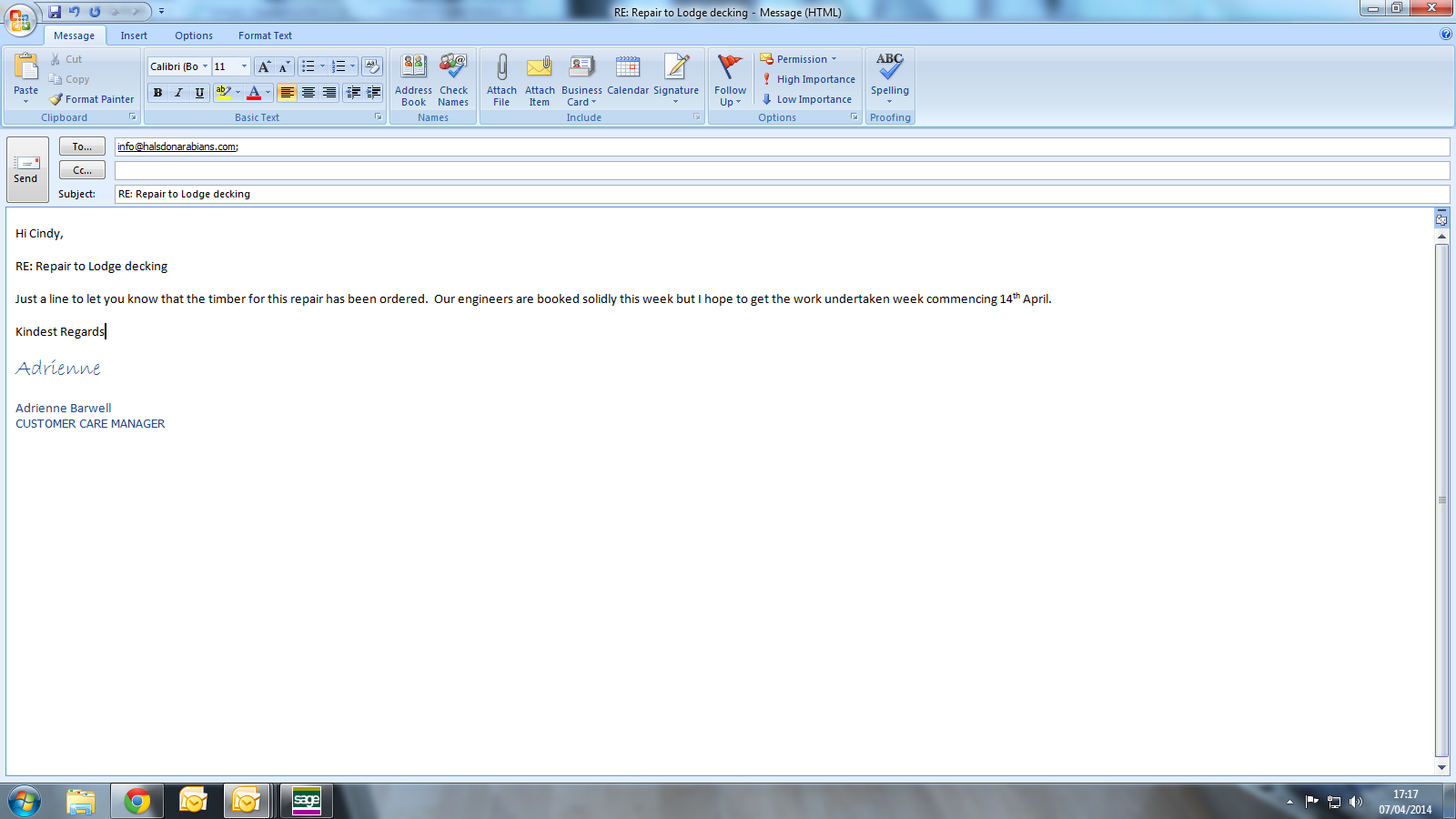 Steve has advised that he is making the whole piece of new decking in the workshop rather on site and will then visit the site and it will just take a couple of hours to replace the decking. Although Steve is supposed to be on site today, he has advised that he is running behind and may not make it there, there is a chance he might be ready this afternoon and will let me know later.