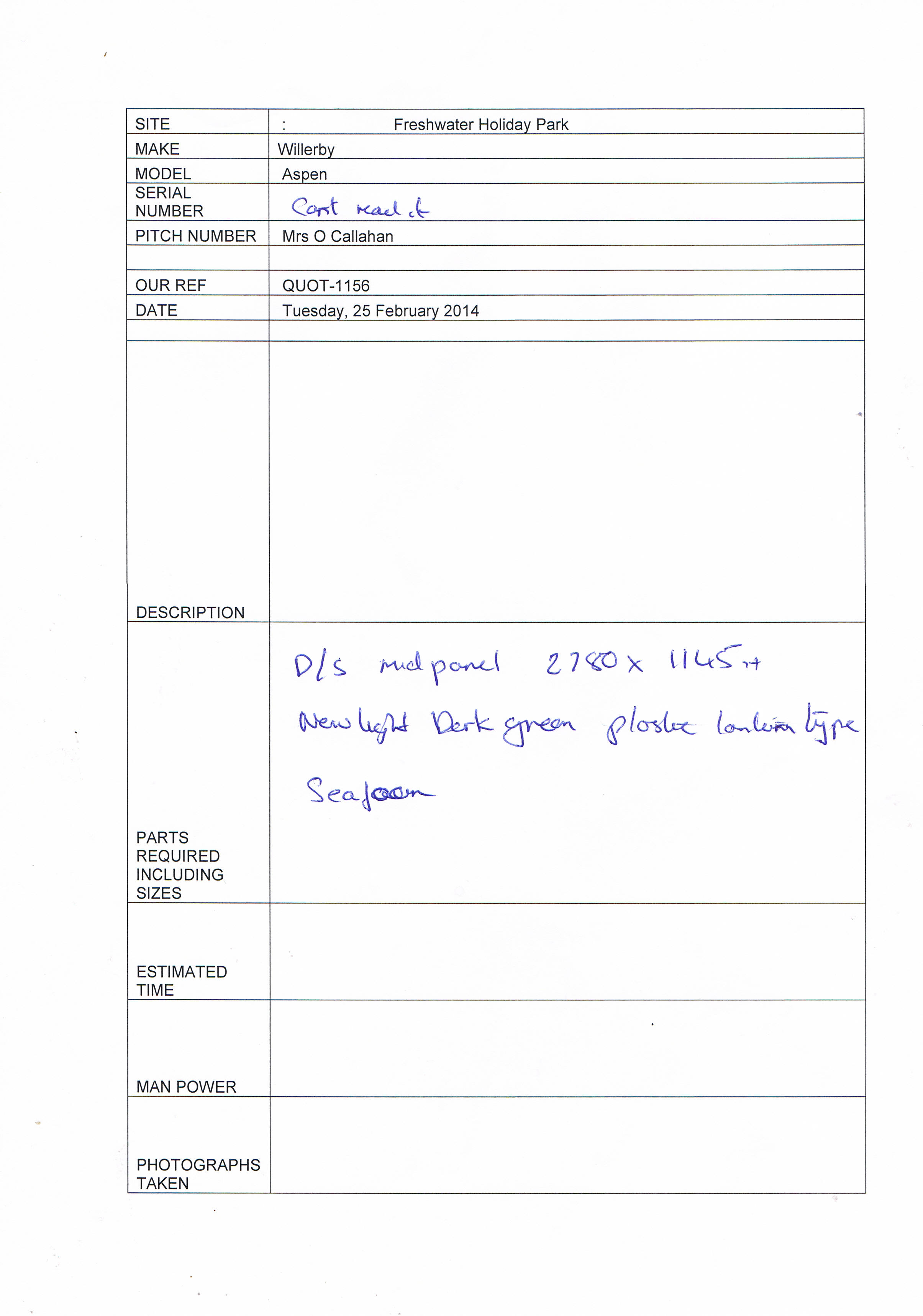 | Summary | Skirting around the holiday home is damaged, customer cannot give much detail | window and panel and exterior light damaged in gales |