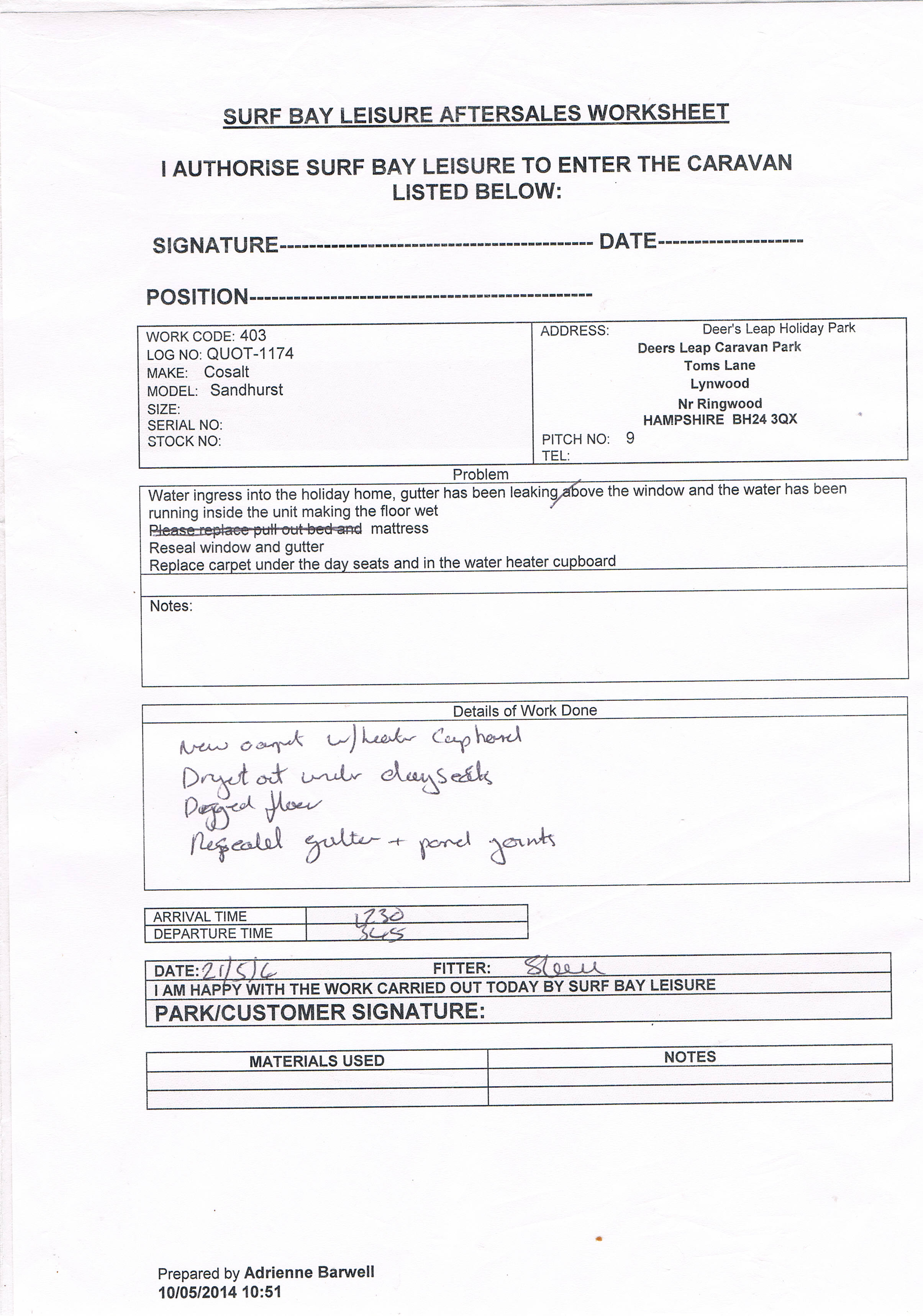 SLA: Quote Time to: