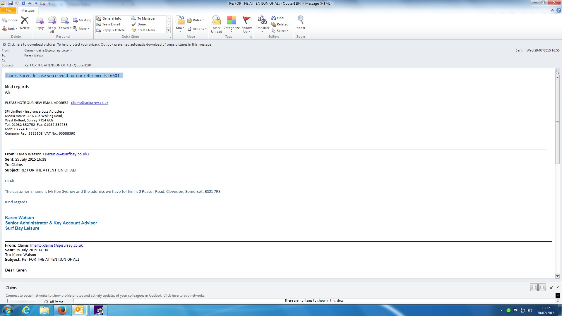 | Attachment | Email from Inusurance company.jpg [ 98641 ] |
