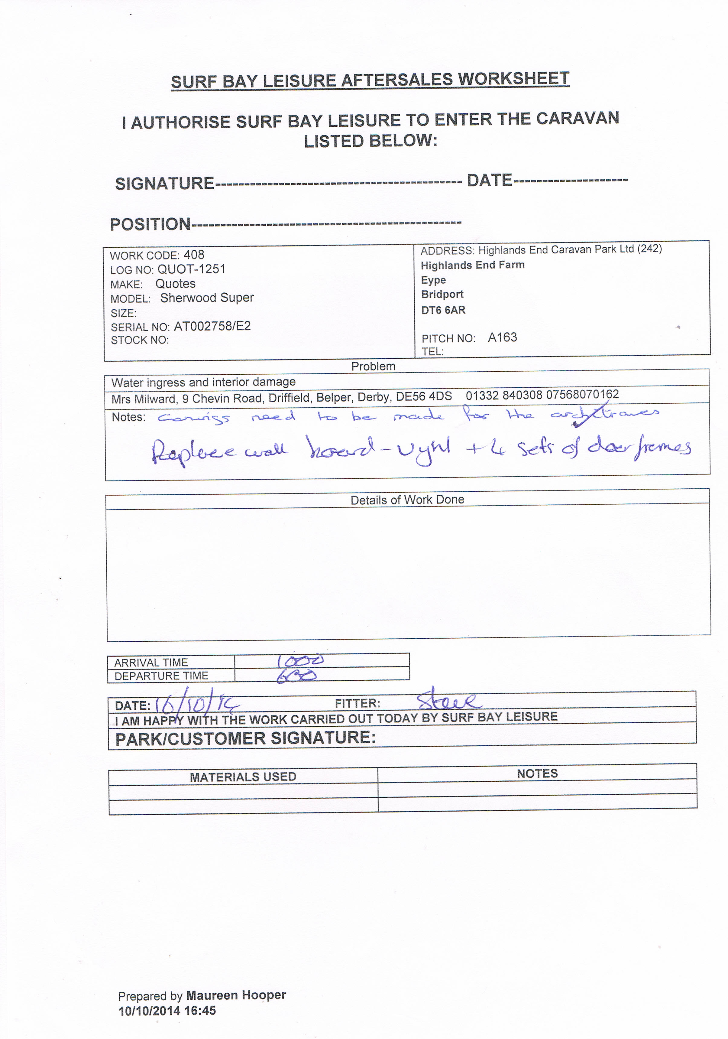 Mrs Milward, 9 Chevin Road, Driffield, Belper, Derby, DE56 4DS 01332 840308 07568070162