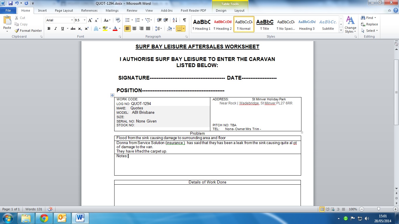 Donna has said that they has been a leak from the sink causing quite allot of damage to the van.