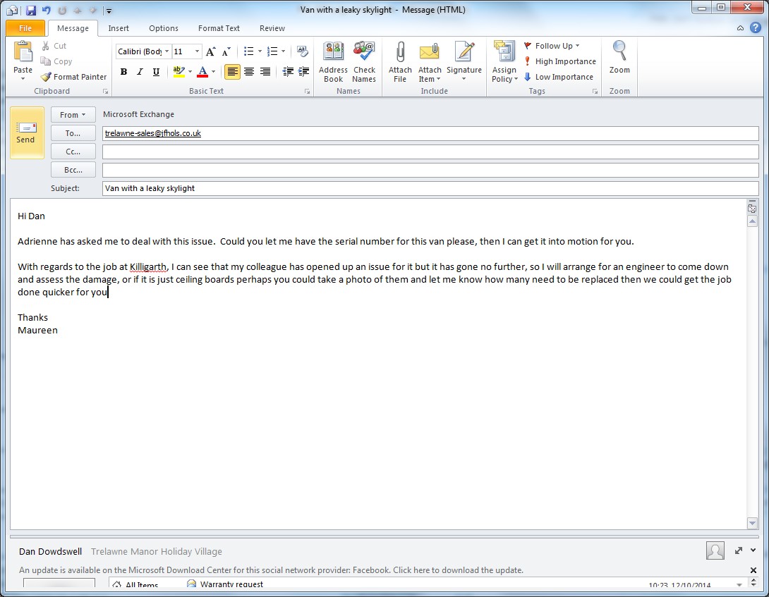Dan has advised he would like us to quote for repairs, the park will be paying not insurance