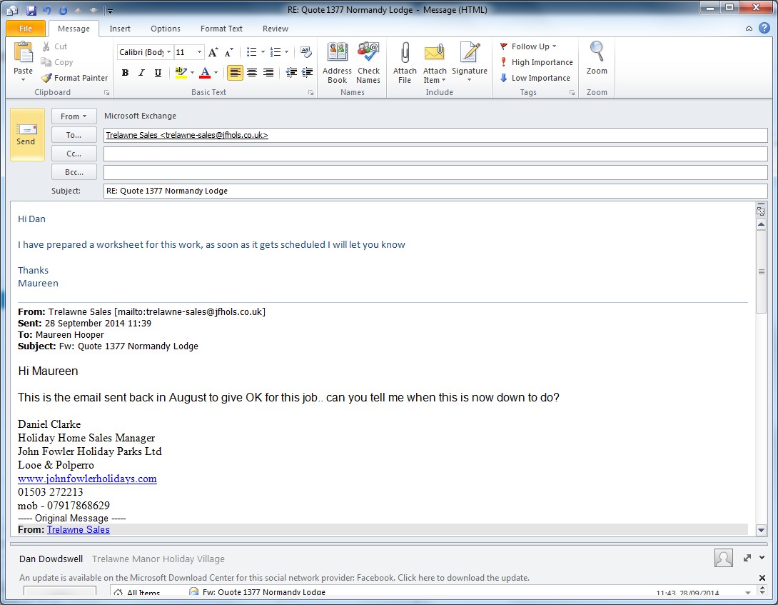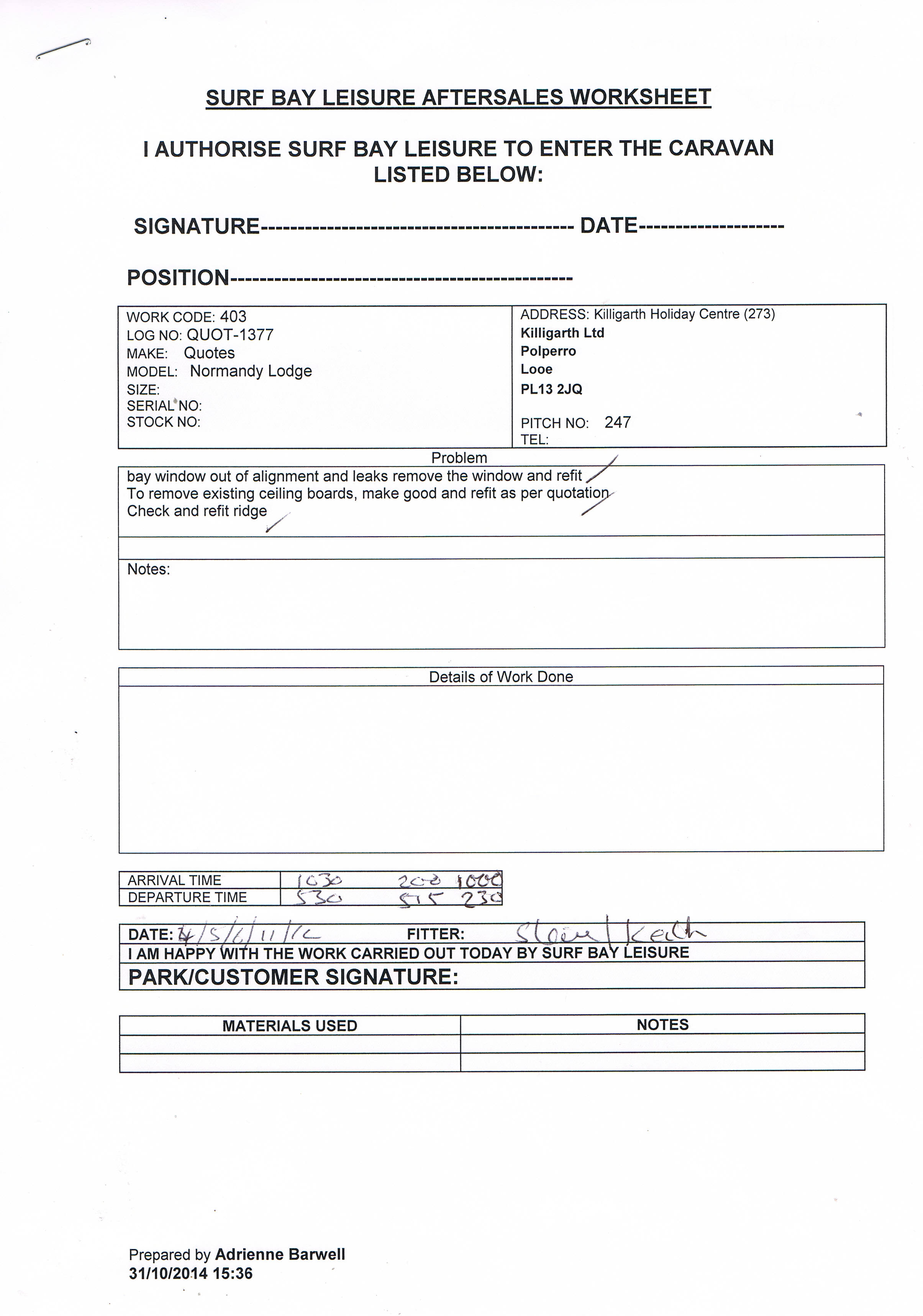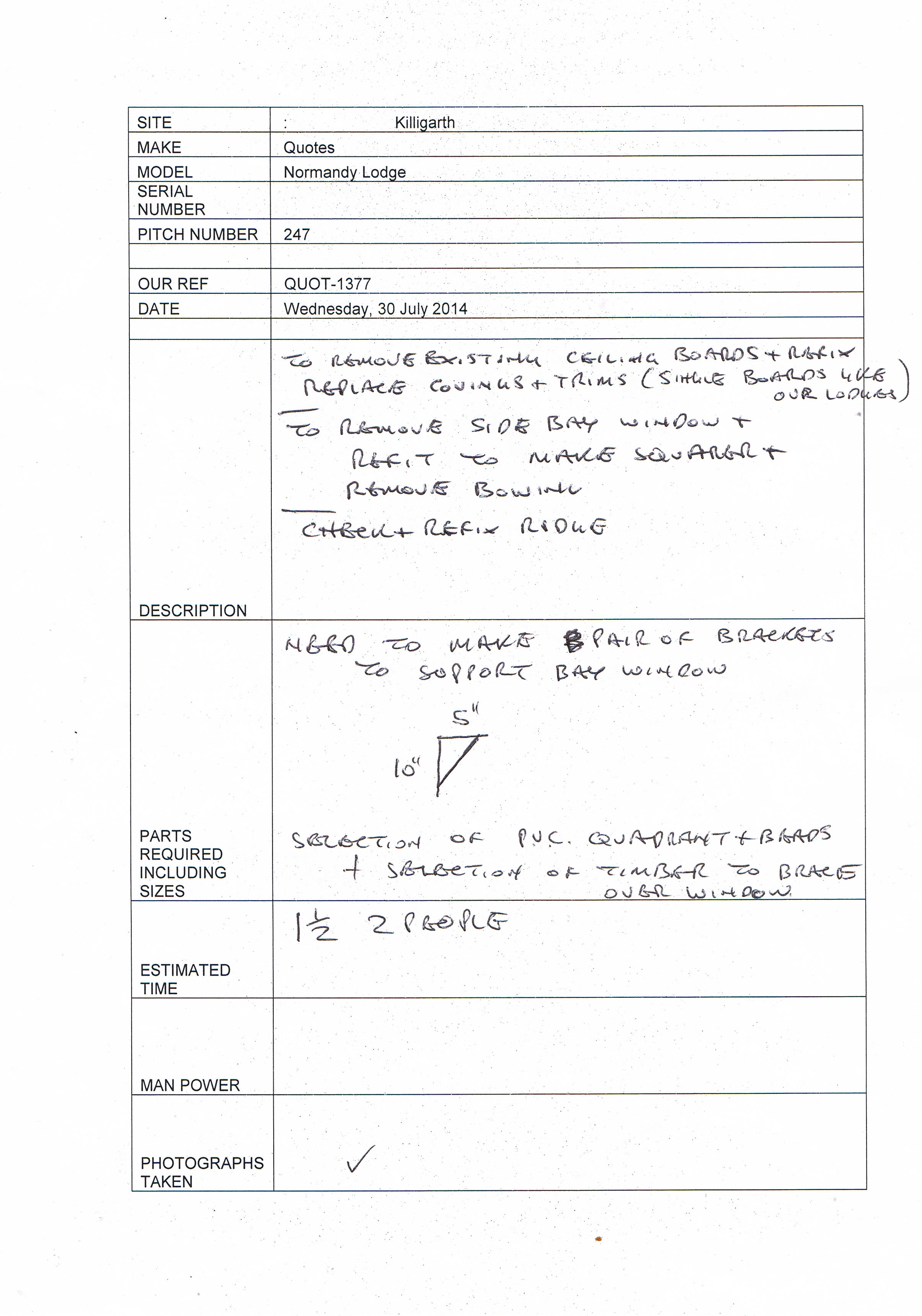 Dan has advised he would like us to quote for repairs, the park will be paying not insurance