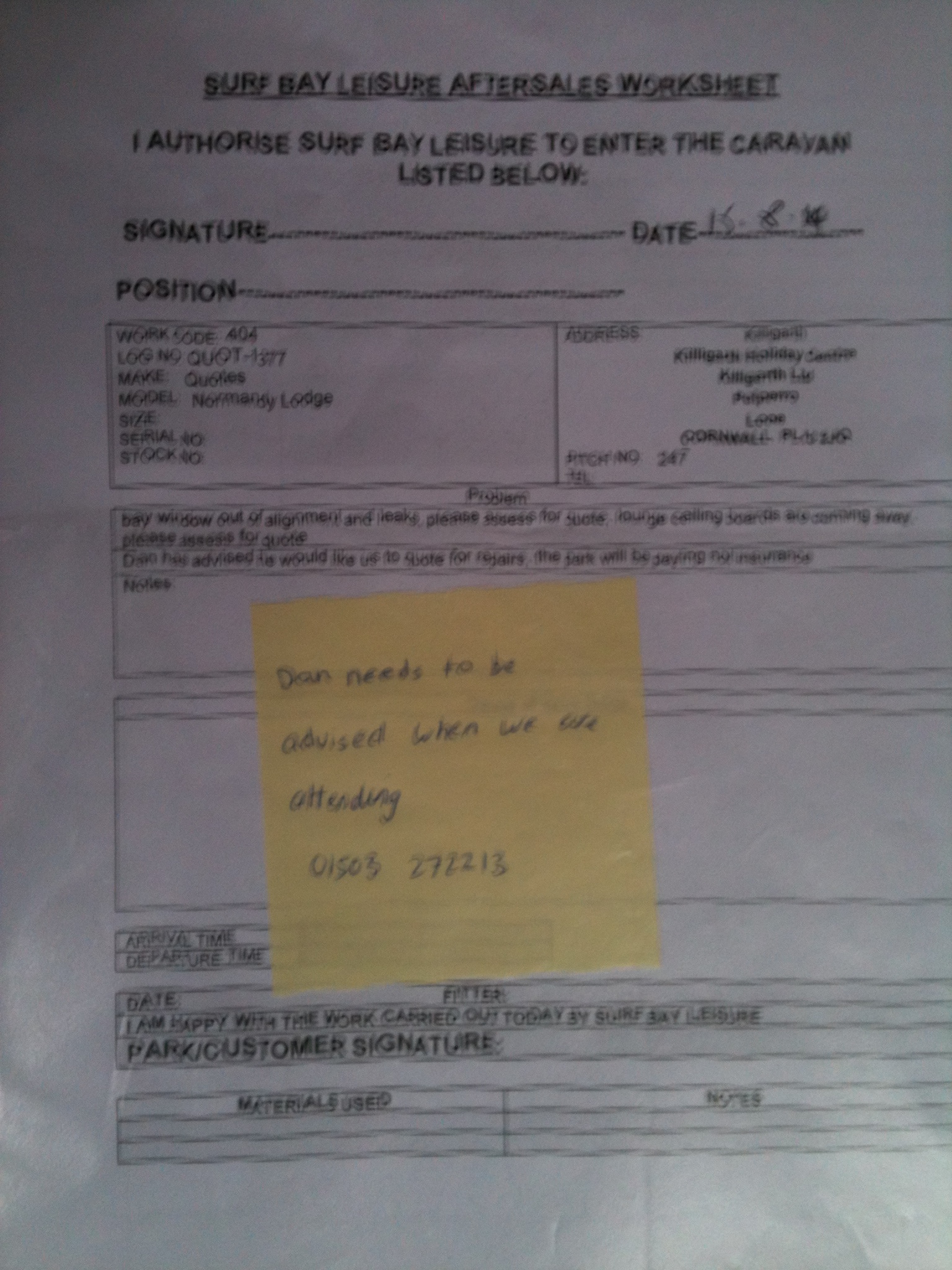 | Attachment | Quote - 1377 Normandy Lodge Killigarth.docx [ 70960 ] |