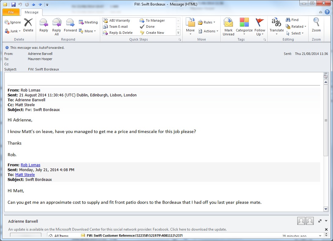 Maureen Hooper (Inactive) added a comment - Still waiting for a response to my enquiry by Swift