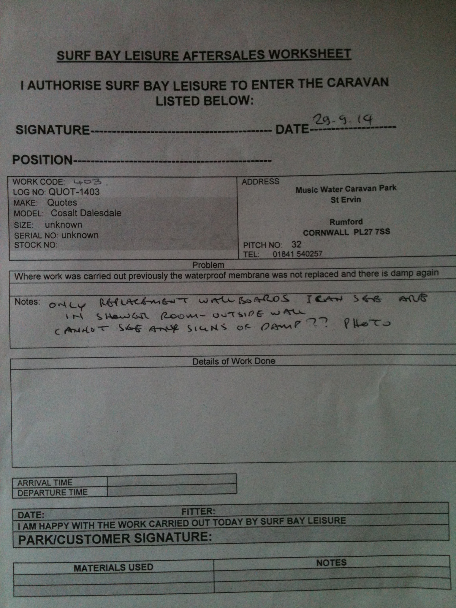 | Description | Damp underneath the shower plastic membrane was not replaced and it has been exposed to the elements |