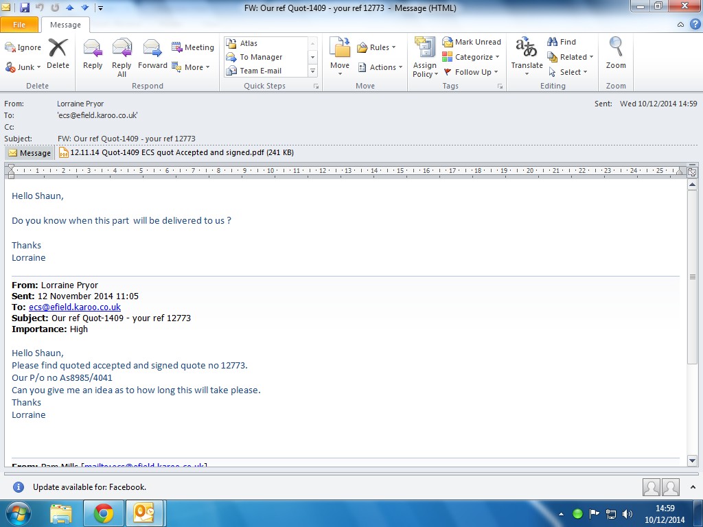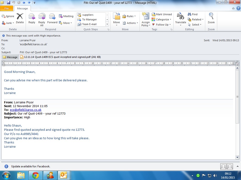 | Attachment | 14.01.15 email to ECS to chase part up.jpg [ 81423 ] |