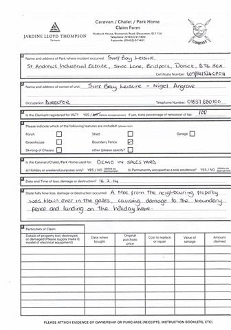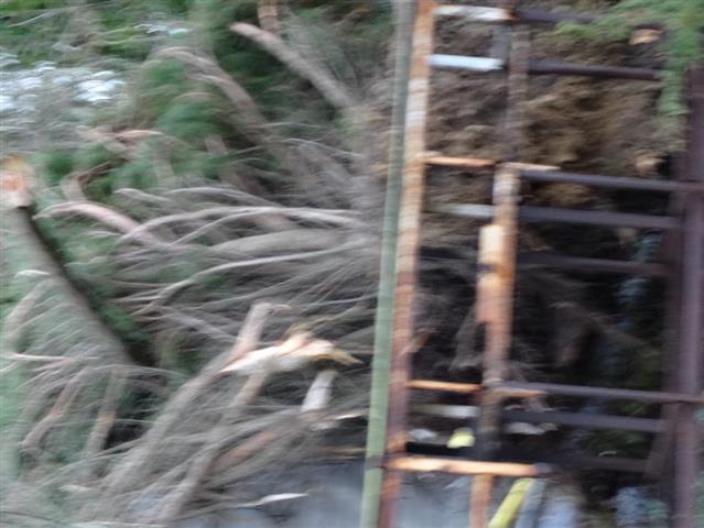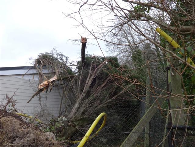 Tree has fallen on unit causing damage to roof and panels