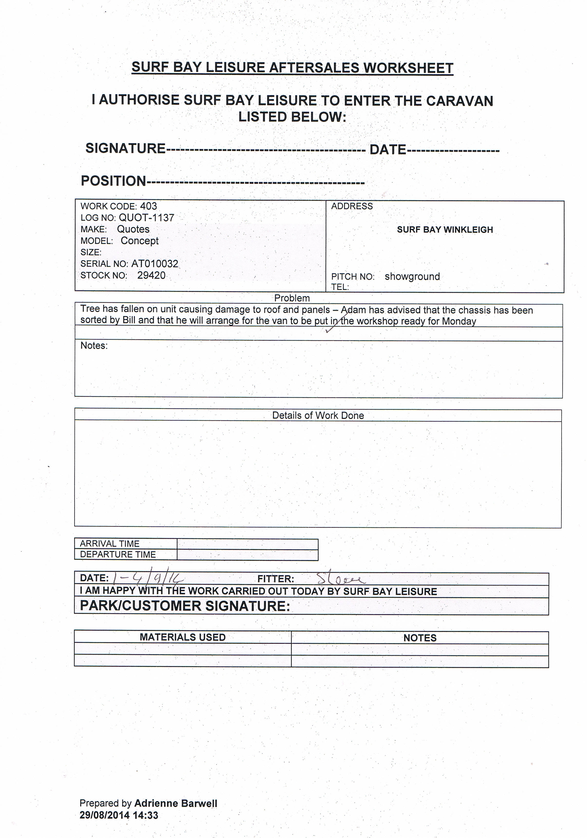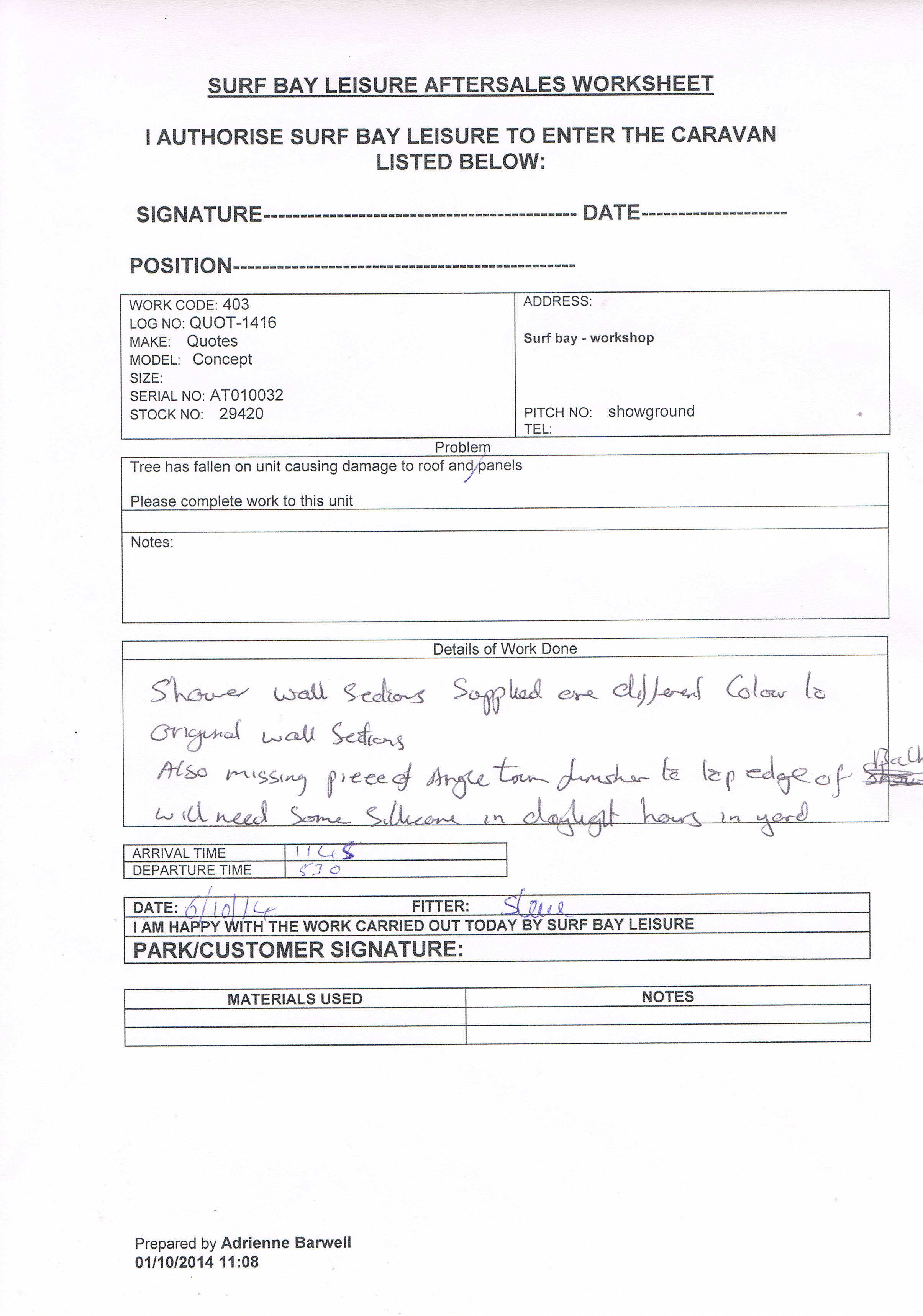 Quotation supplied
