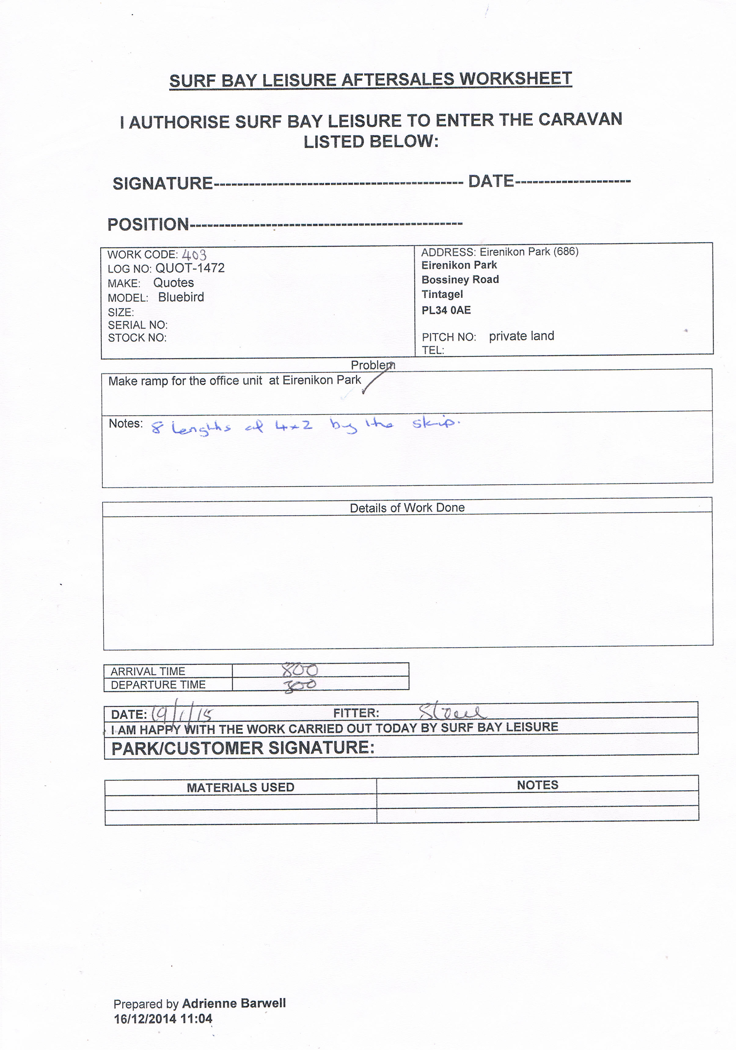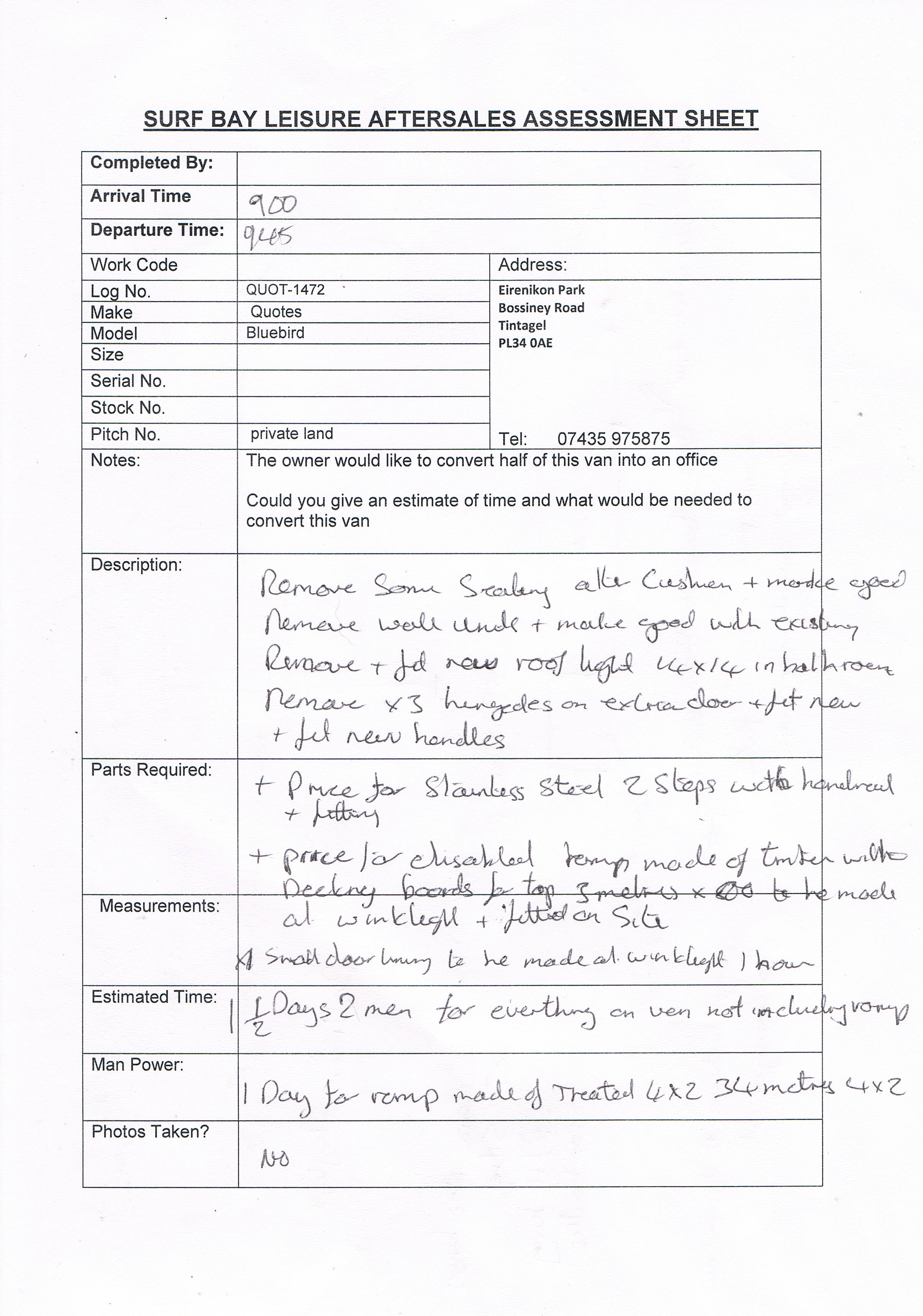 added a comment - I have left a message on the worksheet for Steve to call the customer and make an appointment for either the Tuesday or the Thursday