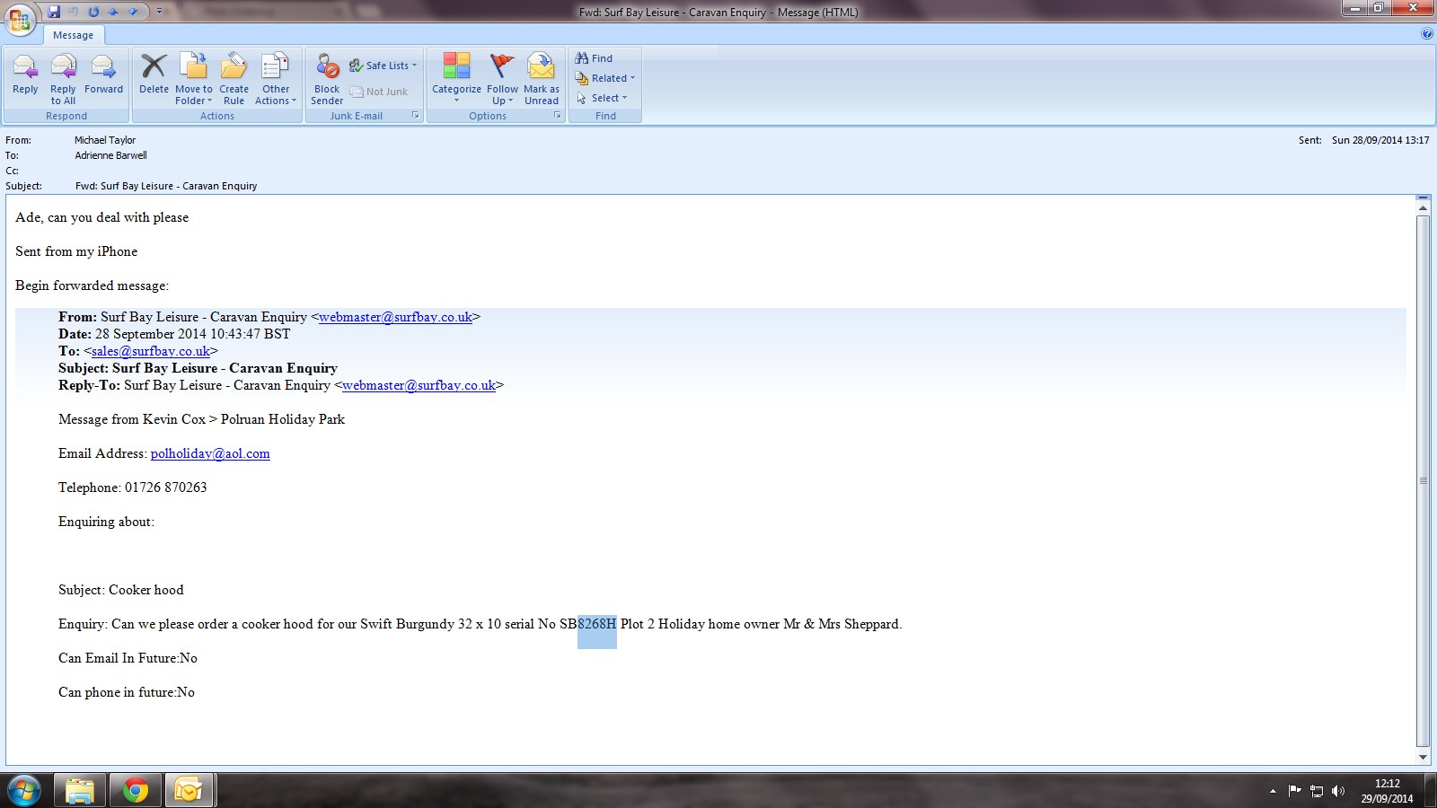 Contact is Mr Kevin Cox 01726870263