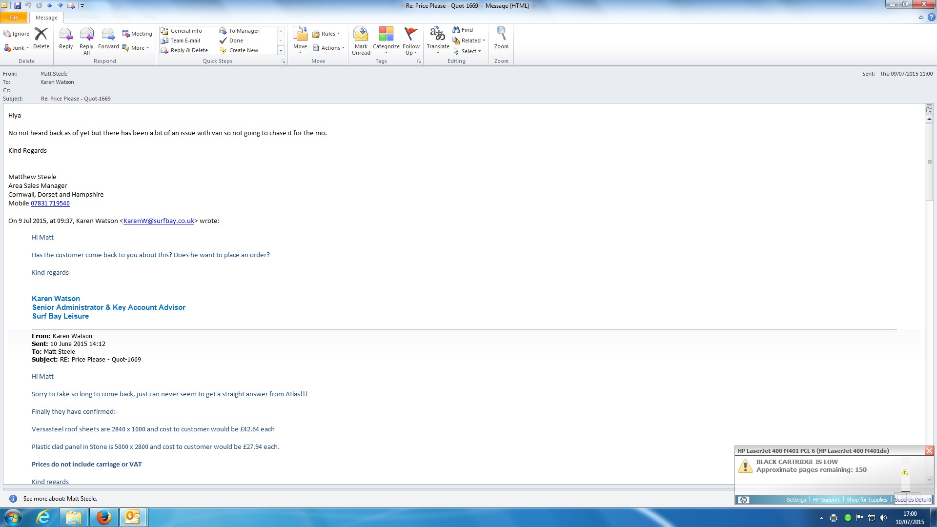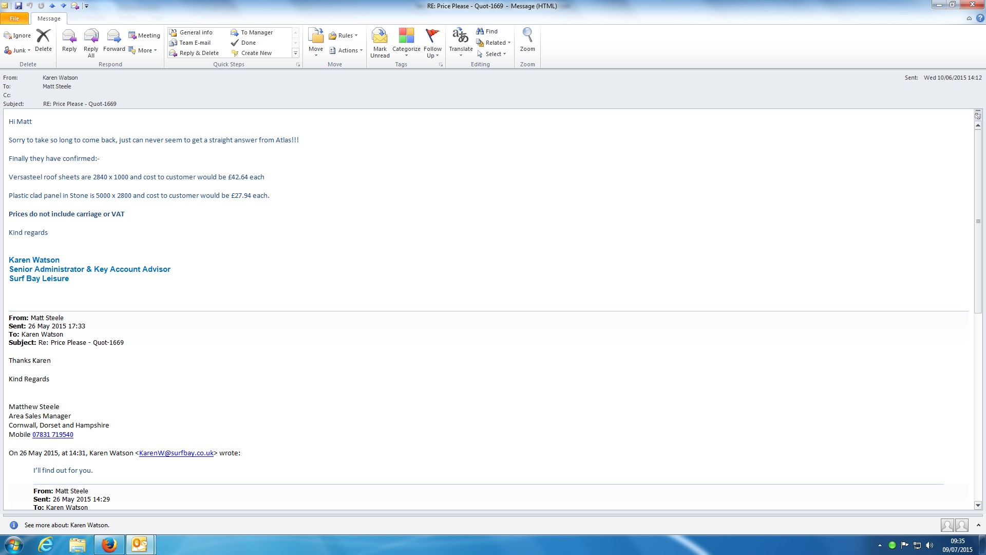 | Attachment | Emailed prices to Matt.jpg [ 96628 ] |
