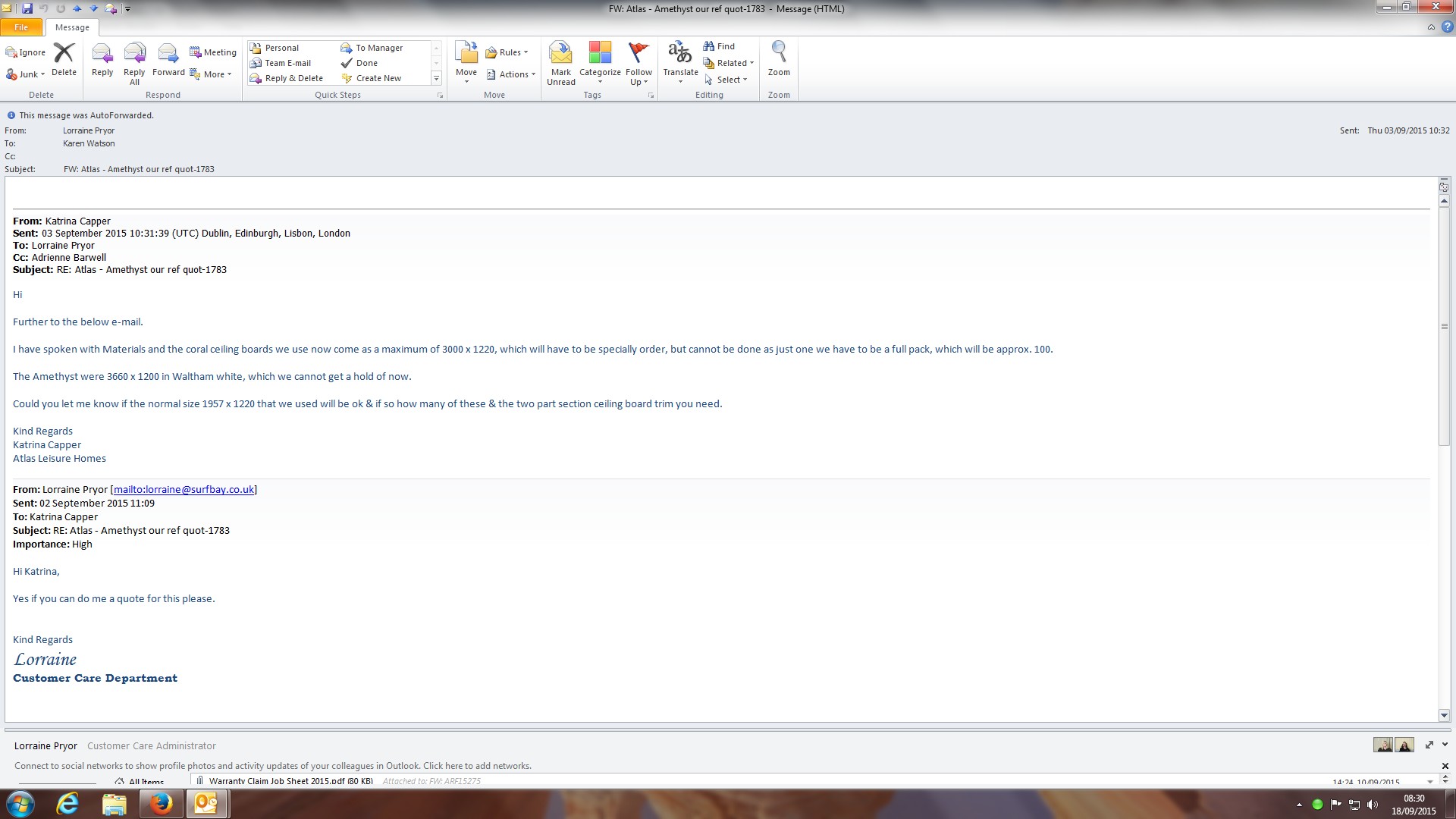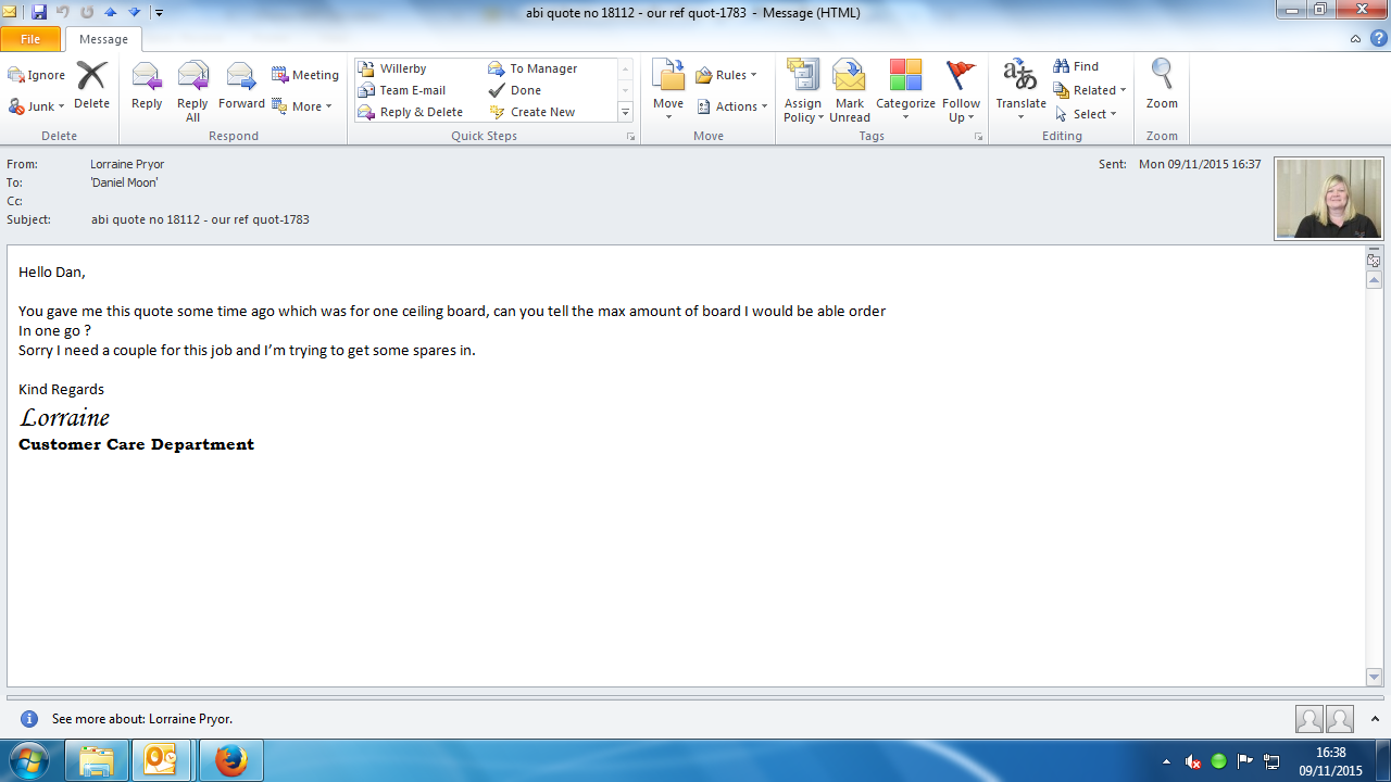 ID Number:ABI quote for ceiling board only non matching - 18112