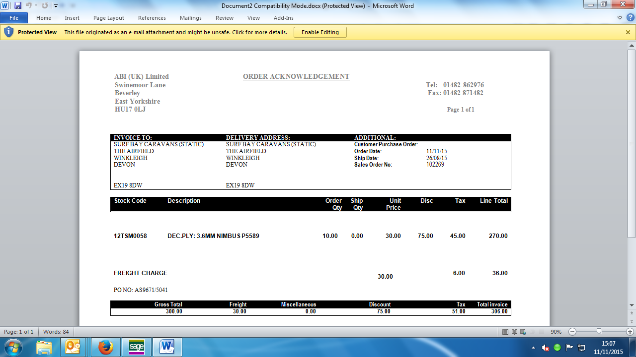 Invoice Number:465025 / 465026