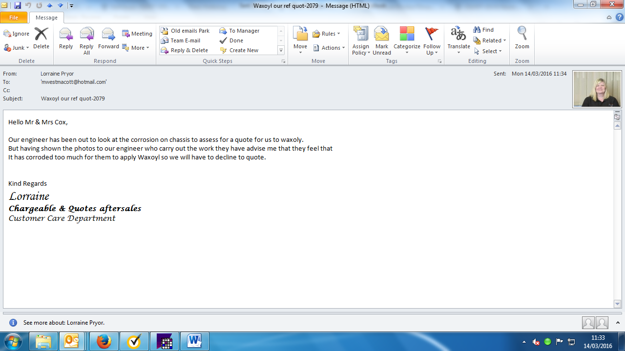 accept these on a quote tba for waxol- this is in my yellow folder this part