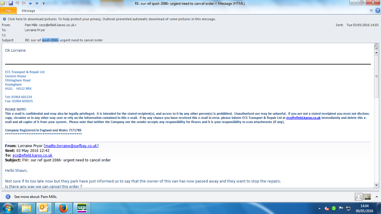 | Attachment | 09.05.16 shaun email to say ok to cancel this order work.png [ 117481 ] |