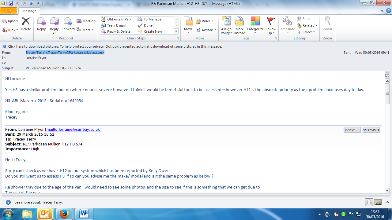 Tracey Terry <TraceyTerry@Parkdeanholidays.com> this was reported by tracey