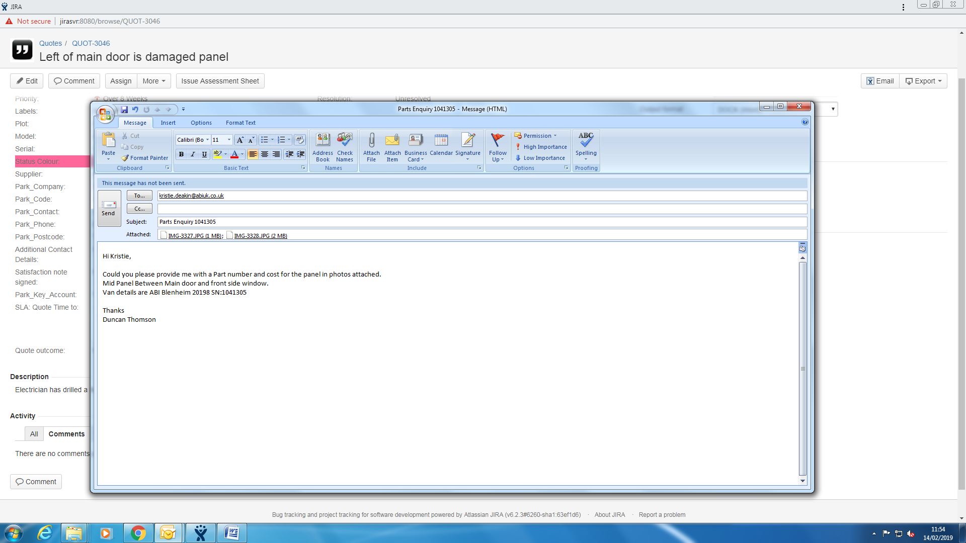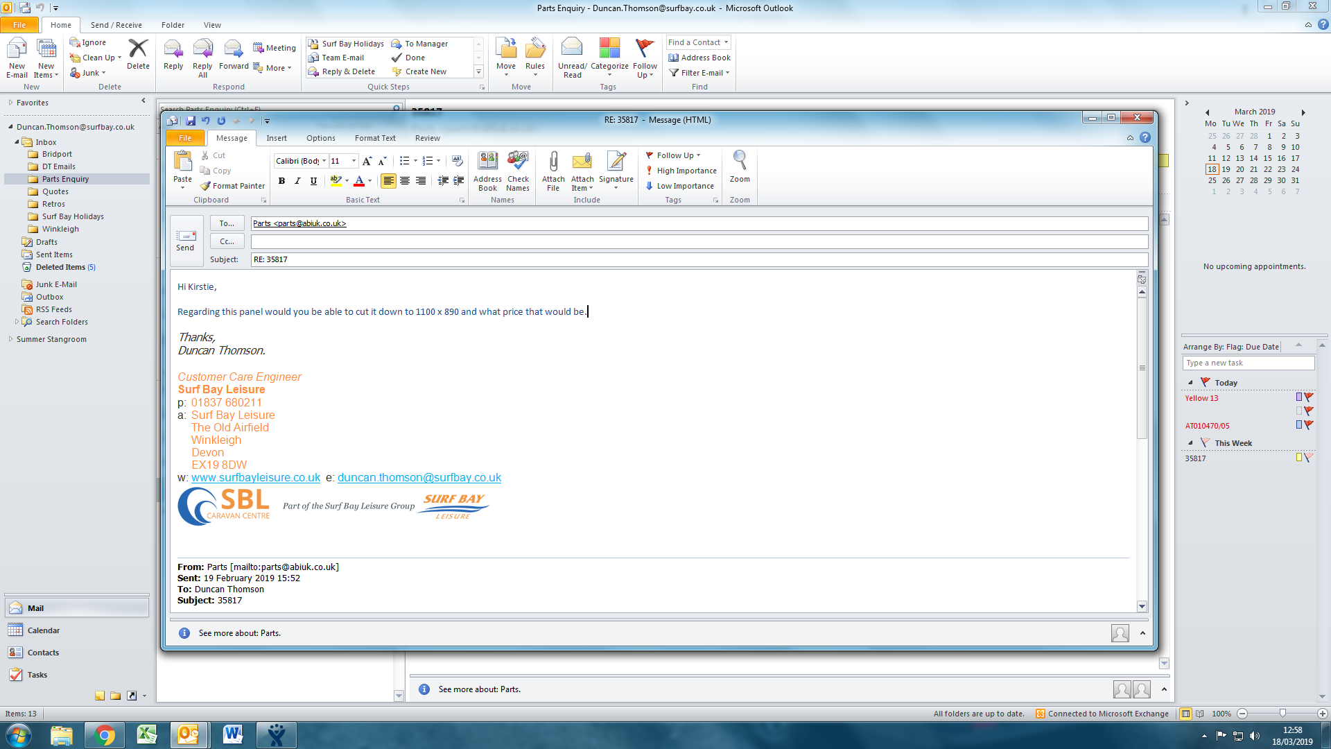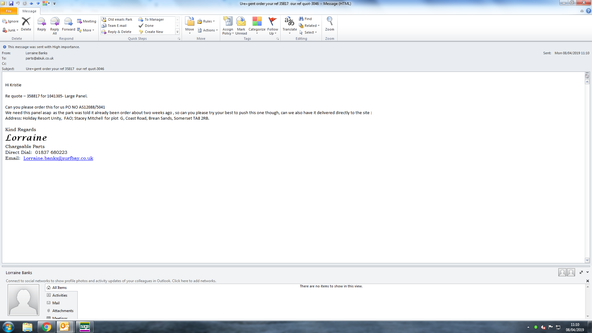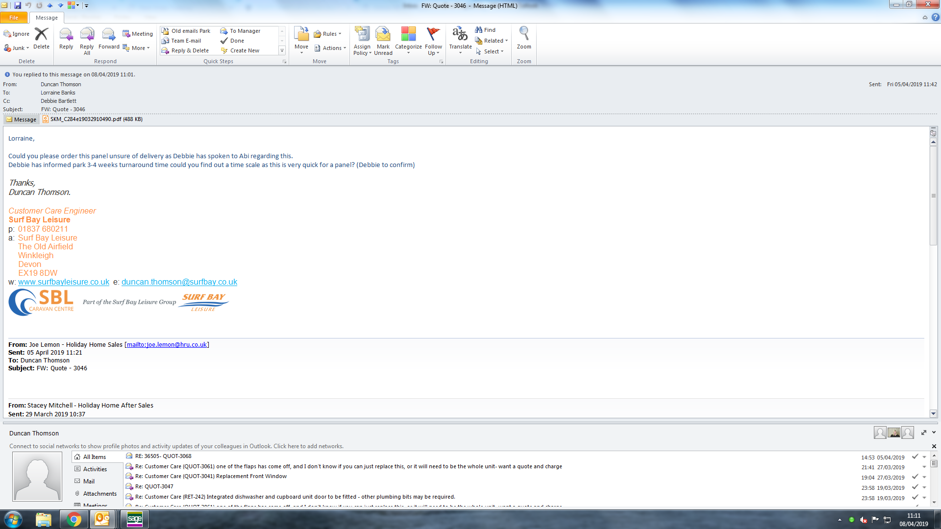 | Attachment | 08.04.19 emailed Stacey to order long panel and sent direct to site .png [ 241875 ] |