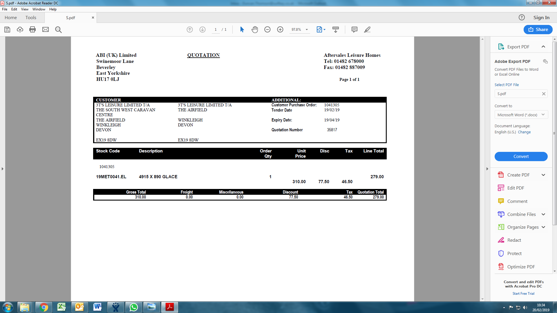 | Status | Quotation supplied [ 10007 ] | Waiting for Customer [ 10350 ] |