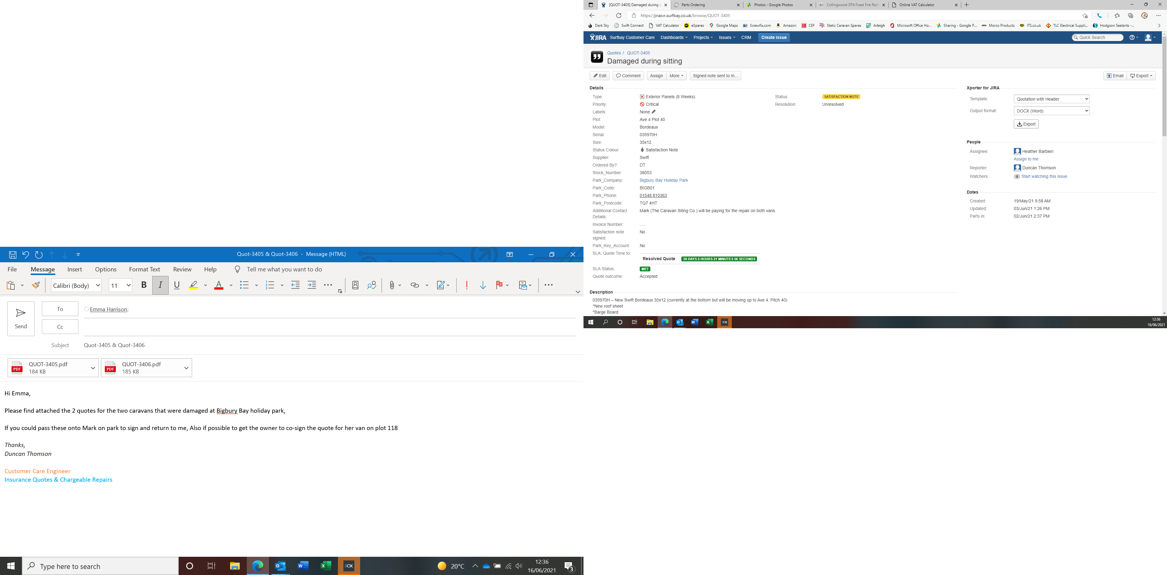 Additional Contact Details:Mark (The Caravan Siting Co.) will be paying for the repair on both vans.