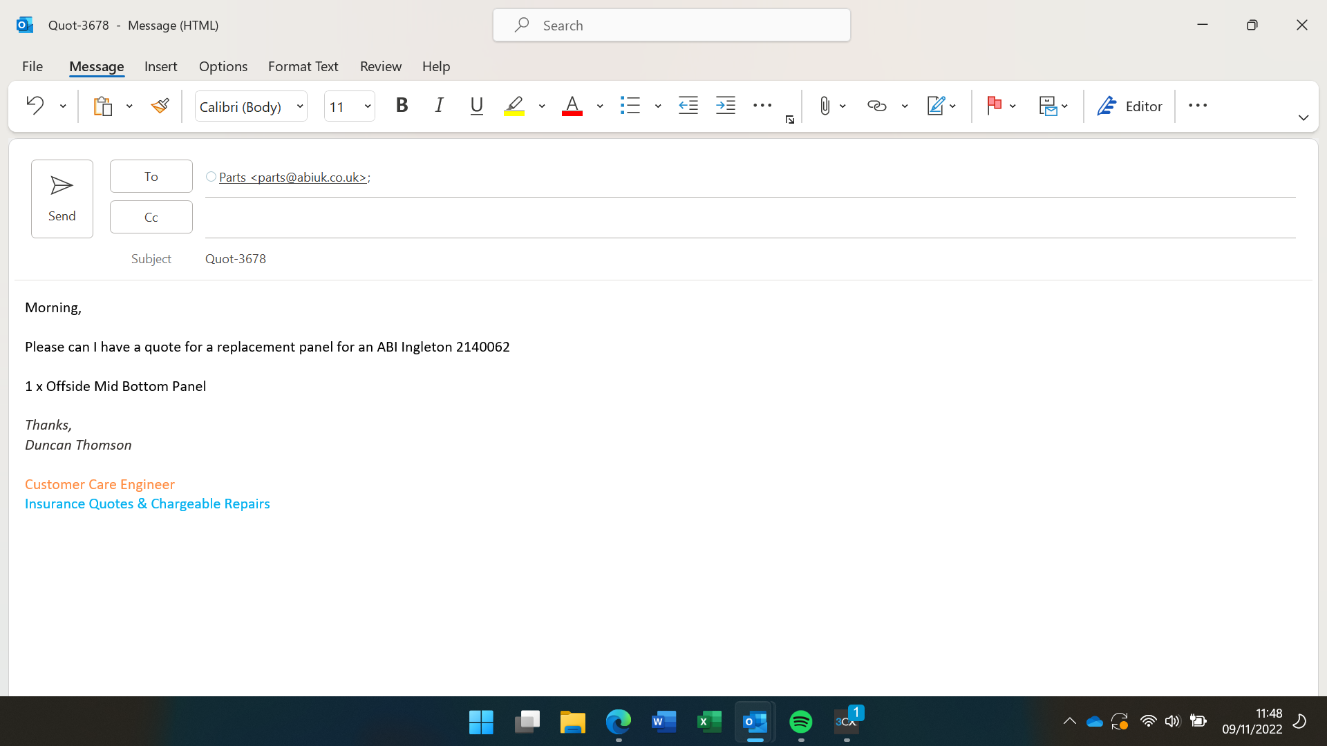 Duncan Thomson added a comment - Parts enquiry sent to ABI