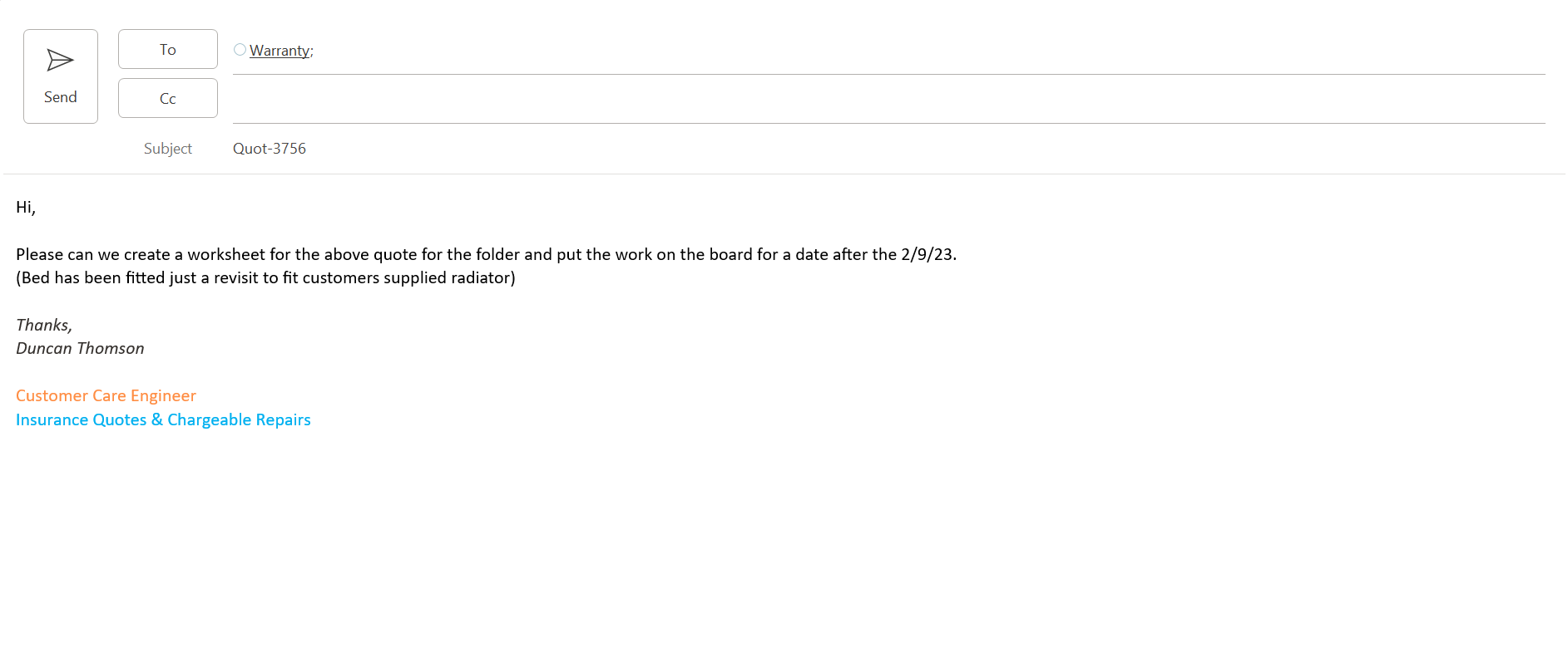 | Status | Awaiting Quote [ 10006 ] | Quotation supplied [ 10007 ] |