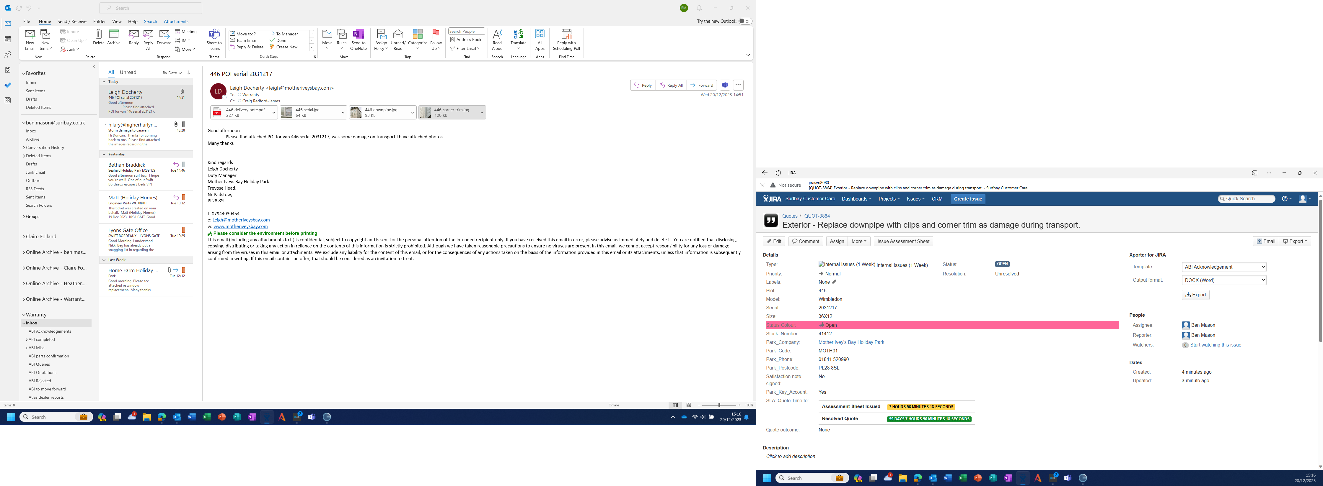 Exterior - Replace downpipe with clips and corner trim as damage during transport.