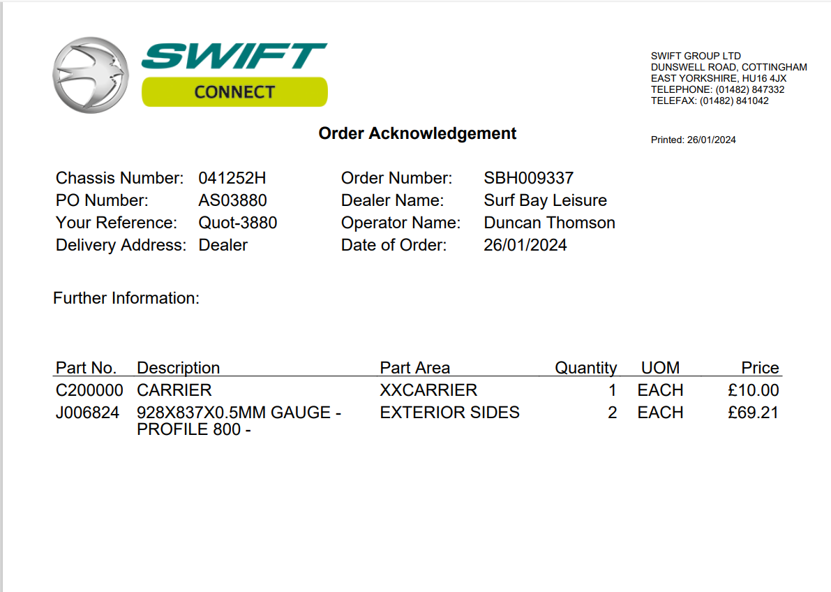 Please can you price a job for us ASAP , we have damage to the Swift Vendee 2022 041252H 40 x 12 on pitch S81