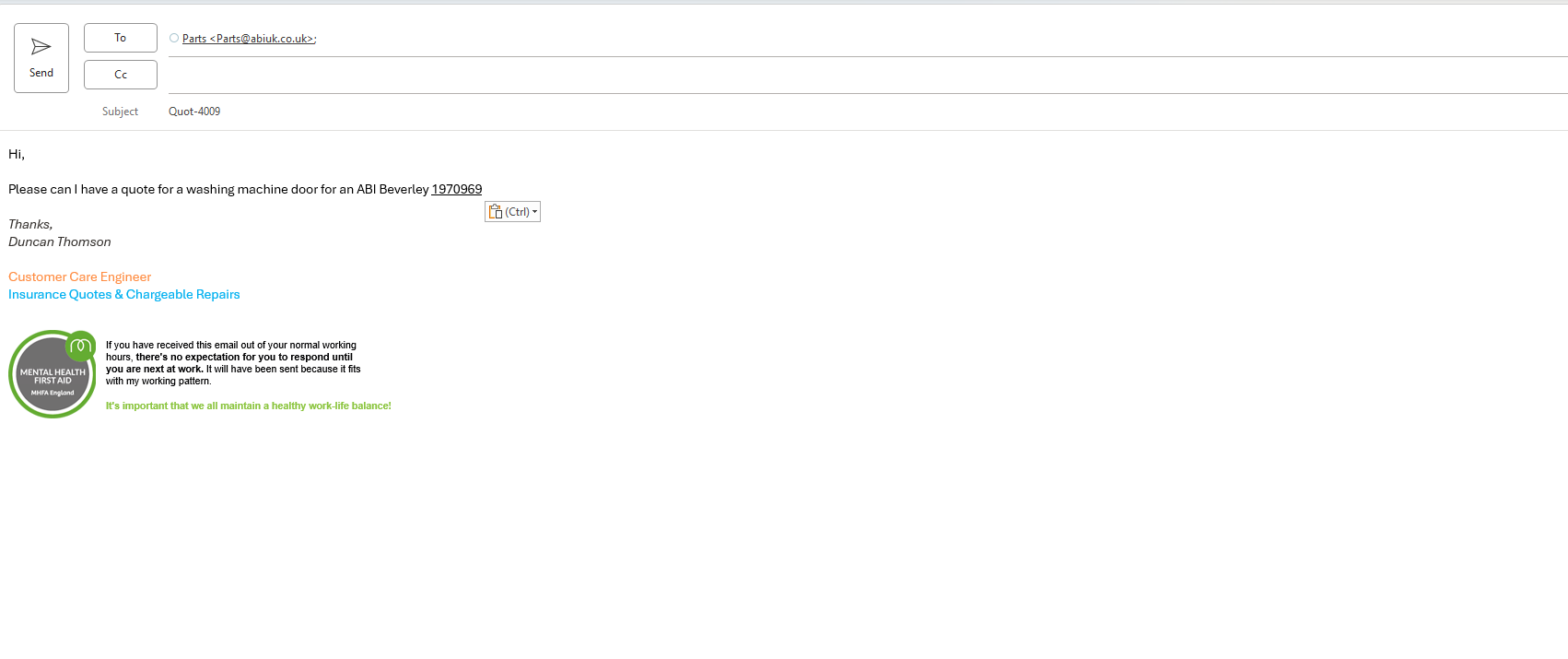 2nd owners has asked for a retro of a washing machine as per ABI spec