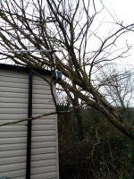 Tree Surgeon called out emergency to clear as much as possible get weight off roof , get branches off away from