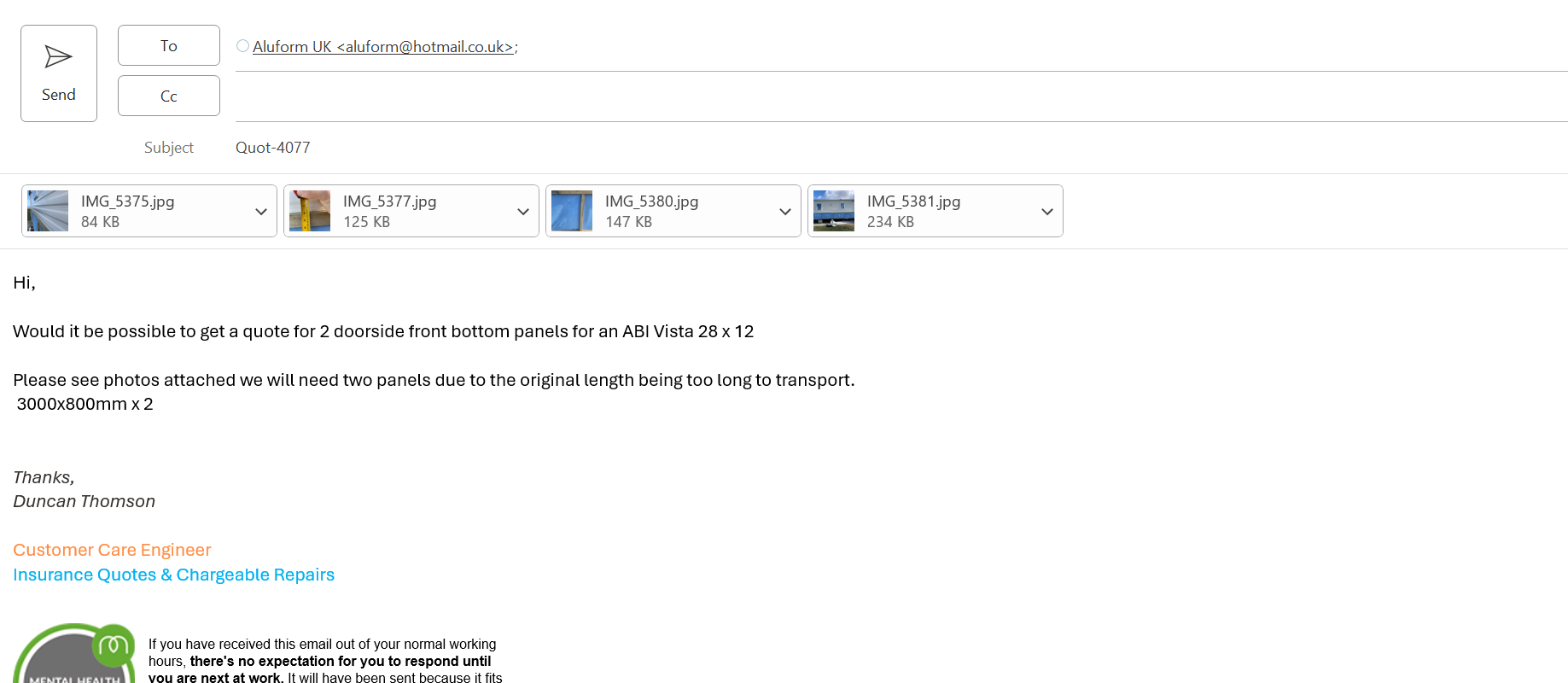 | Status | Awaiting Quote [ 10006 ] | Quotation supplied [ 10007 ] |
