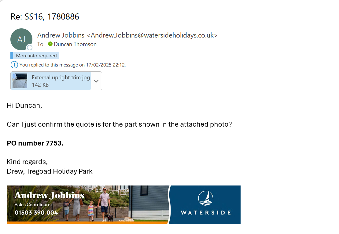 This was delivered to Site as a Supply only due to parks request and we were unable to get an engineer time to complete this so Steve attended and delivered to sales office.