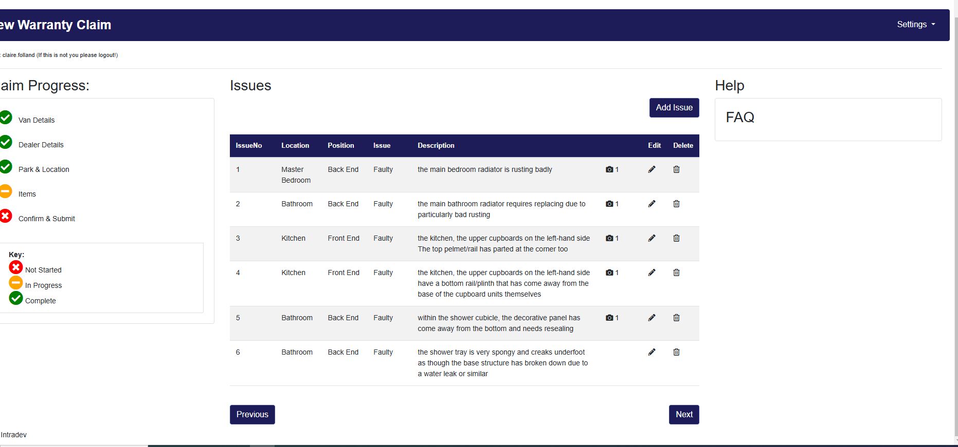 | Issue Type | Kitchen Cupboards (8 Weeks) [ 31 ] | Radiators (4 Weeks) [ 36 ] |