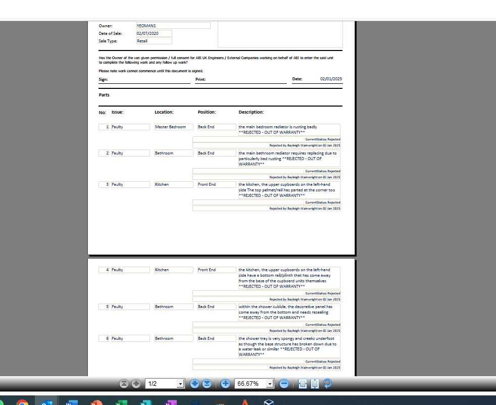 | Summary | CLONE - the kitchen, the upper cupboards on the left-hand side The top pelmet/rail has parted at the corner too | the main bathroom radiator requires replacing due to particularly bad rusting |