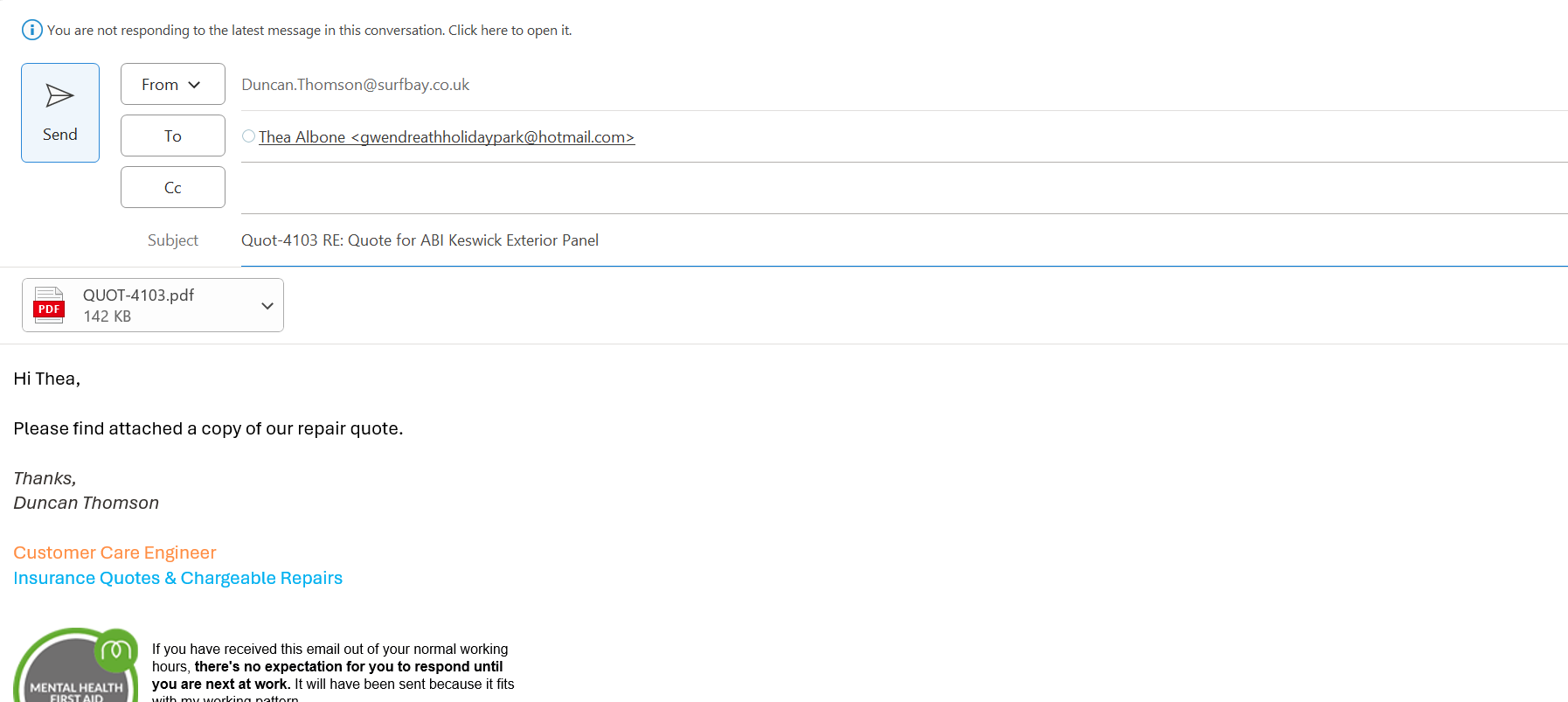 | Attachment | Quote sent.png [ 400419 ] |