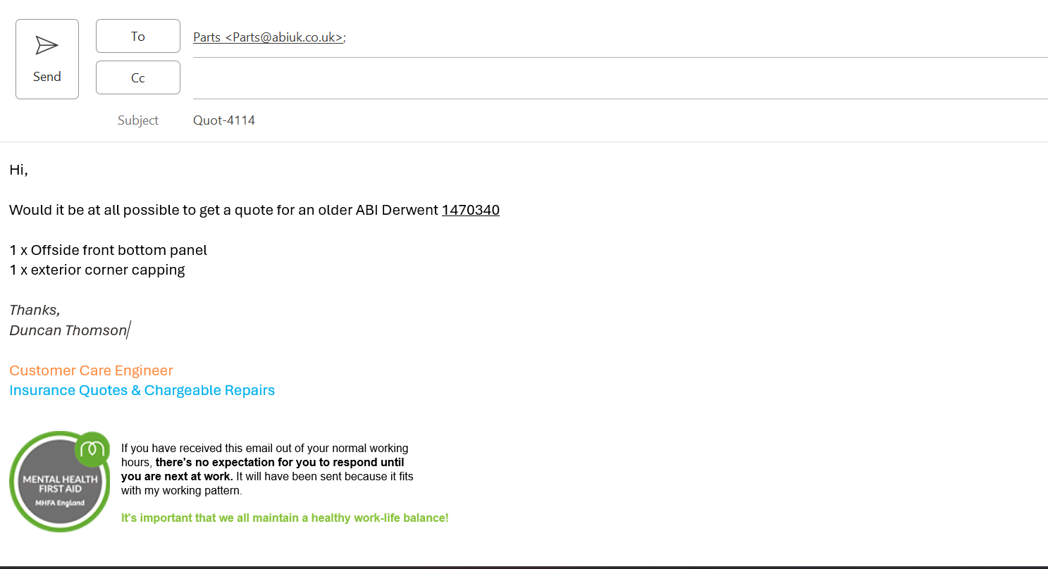 Apologies please disregard the quote provided, I do not have the correct alloy spec for this van and it is over 10 years old so the supplier no longer holds this.