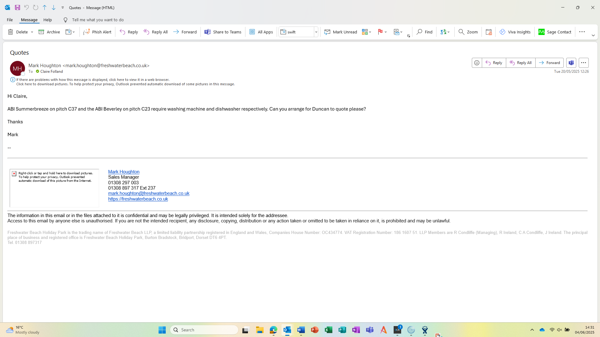 quote sent to park