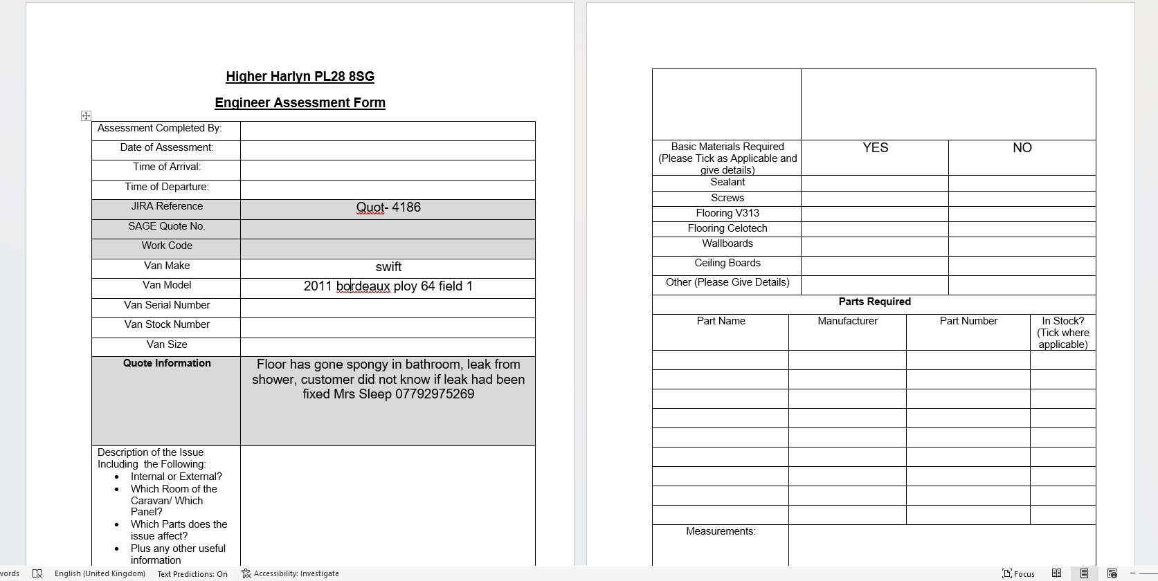 | Status | Assessment Sheet Issued [ 10549 ] | Engineer Assessment Scheduled [ 10048 ] |