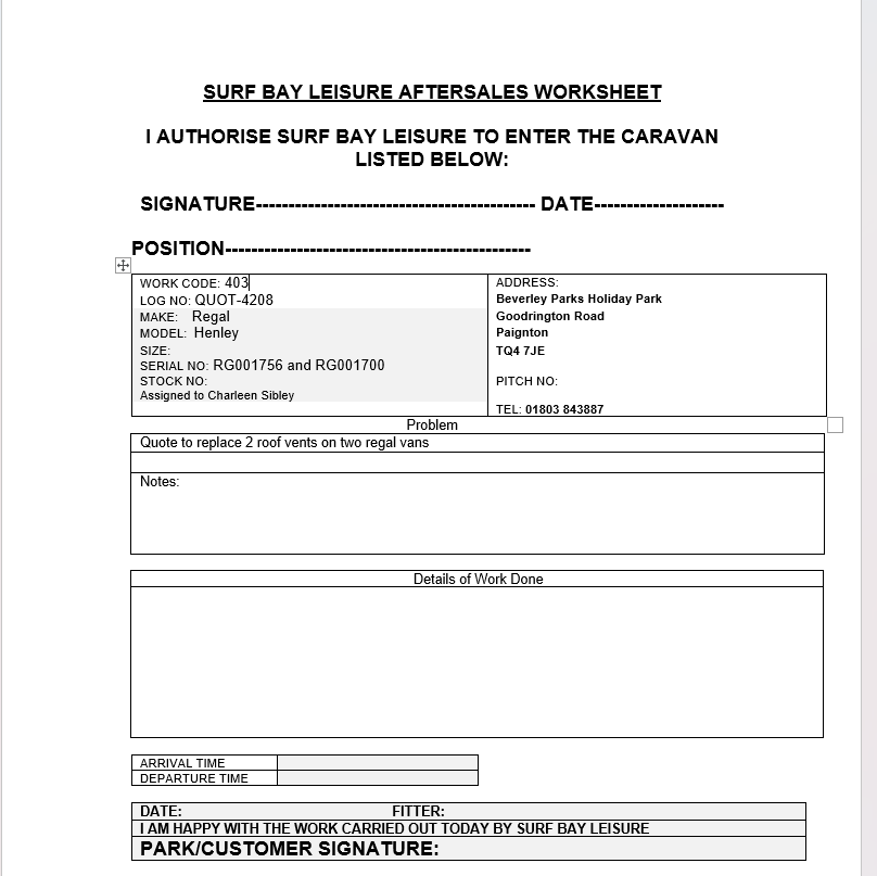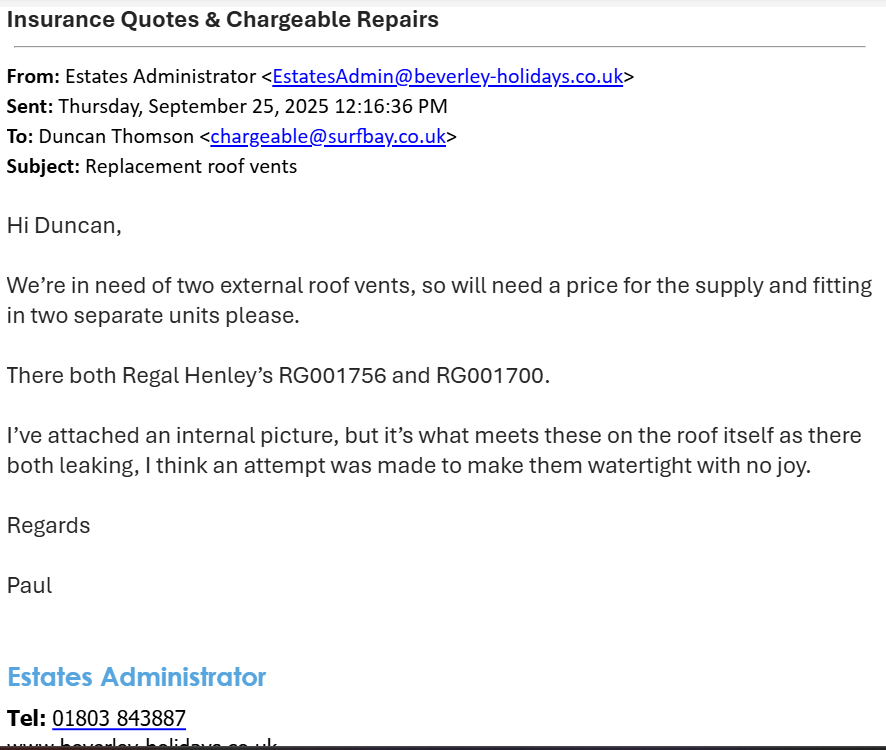 Quote to replace 2 roof vents on two regal vans